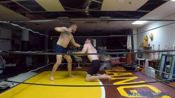 Oliver, for his part, suffers like a champion, never abandoning his intense dream of getting away, while enduring chokes, leg attacks, and a cruel back breaker that has him sobbing, pleading, and gasping until he is rolled onto the mat in agonizing pain for the master to apply an aggressive camel clutch. But this play toy’s only fun when it’s reacting properly to the punishment being dished out, so next it’s more offense with the chain, and a strangely satisfying session with the ropes that has Maverick taking his aggression out on Oliver’s face!