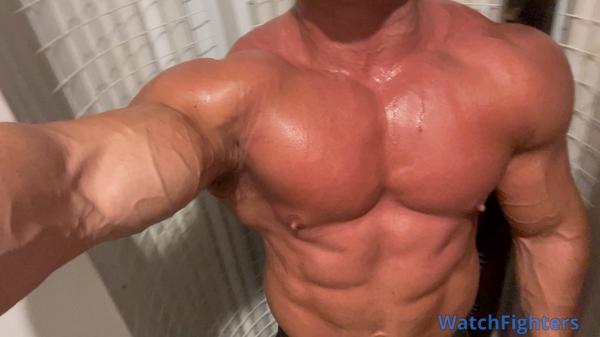 Forced onto my back, stretched and restrained, my abs are now oiled up before the punishment starts again..