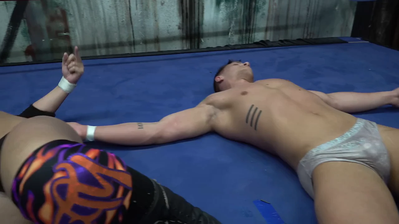 The third and final fall begins with Eliot attacking Ty’s midsection with shoulder blocks, followed by a DDT. Stripping Ty further down to just a white thong, Eliot’s onslaught continues until Ty again miraculously reverses Eliot’s fortunes. Don’t forget about that chair from the beginning of the bout though, it will come in handy to help determine the final victor in the bout, as one fighter will lie unconscious in the center with the other claiming victory. A final pedigree delivered and the bout I decided. A great pro wrestling spectacle!