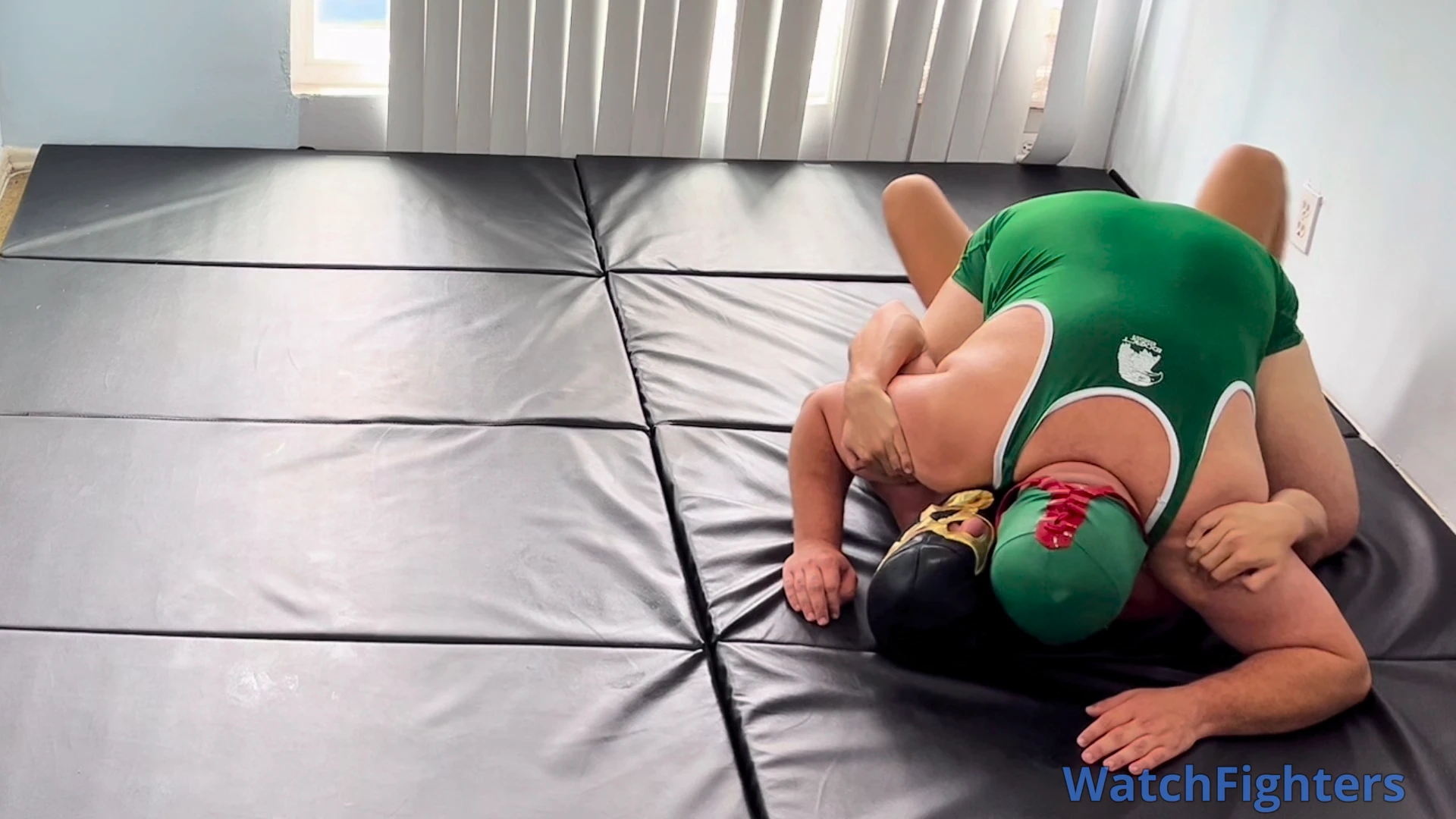 Standing at the same height, these two go toe-to-toe in a fully competitive battle packed with brutal holds: scissor locks, bearhugs, headlocks, and total body squashes.