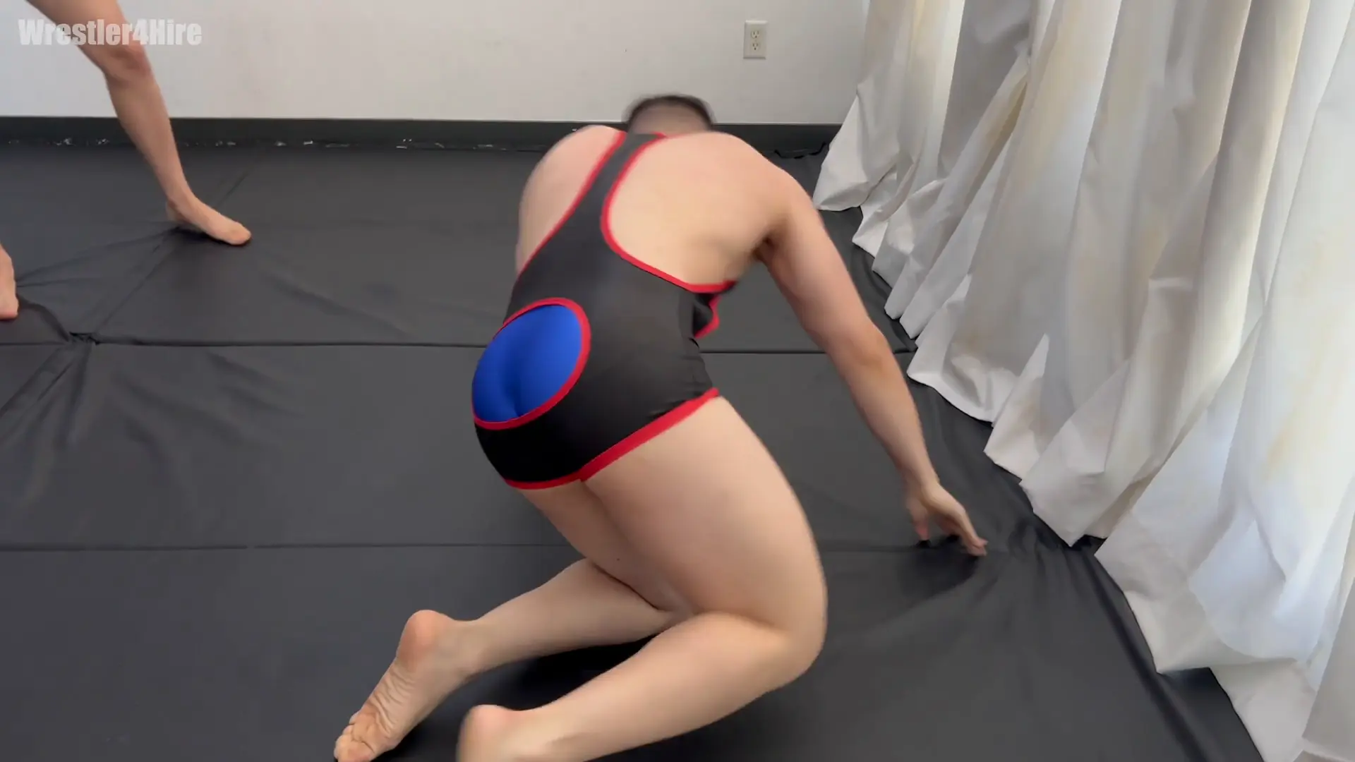 Francisco relieves Adam of his blue speedo to leave him now clad in only a black thong revealing a growing erection. This last indignity seems to spark another short bit of offense for Adam as he brings Francisco to the mat and strips his of his singlet as well.