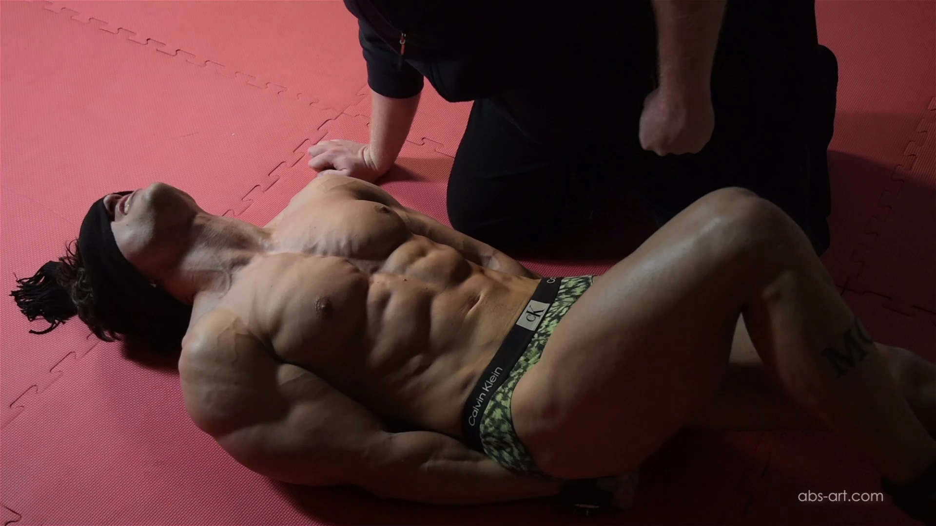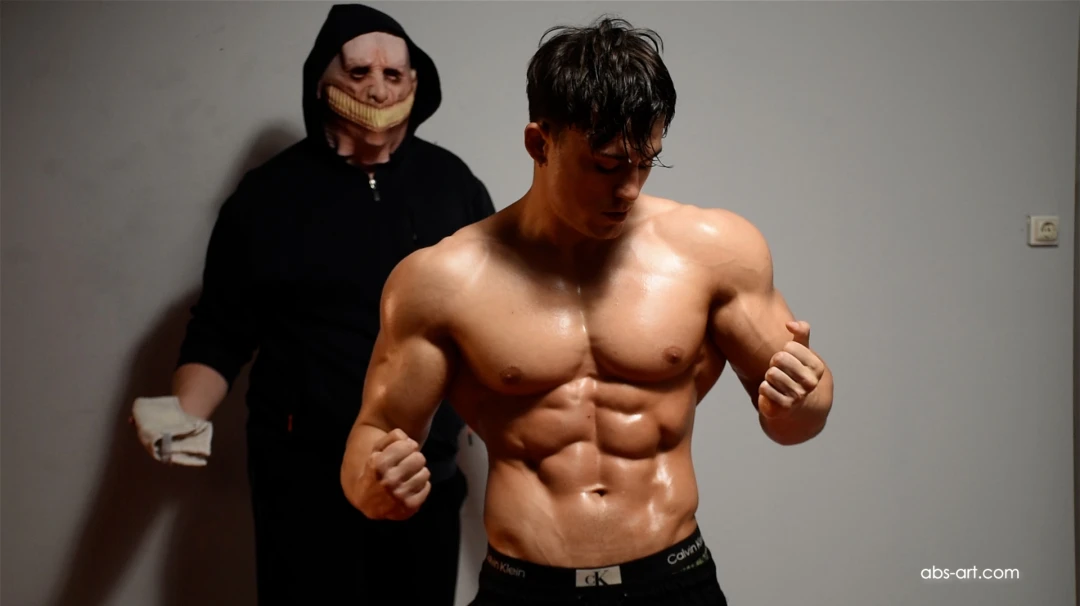 Ripped Hugo's workout interrupted by Kee-a-fas - gutpunch choke