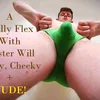 Will performs another flexing show for you and as usual being cocky, cheeky and very naughty. He becomes a little warm and then removes his ting green posers teases you and Flexes nude just for you displaying his huge Manhood!