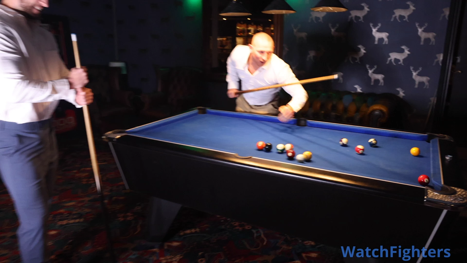 Two hunky men are playing on the snooker table. They become clockstopped and stripped and cocks and asses exposed.