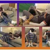 Lewis chokes Ryan with his legs while relaxing on the sofa.