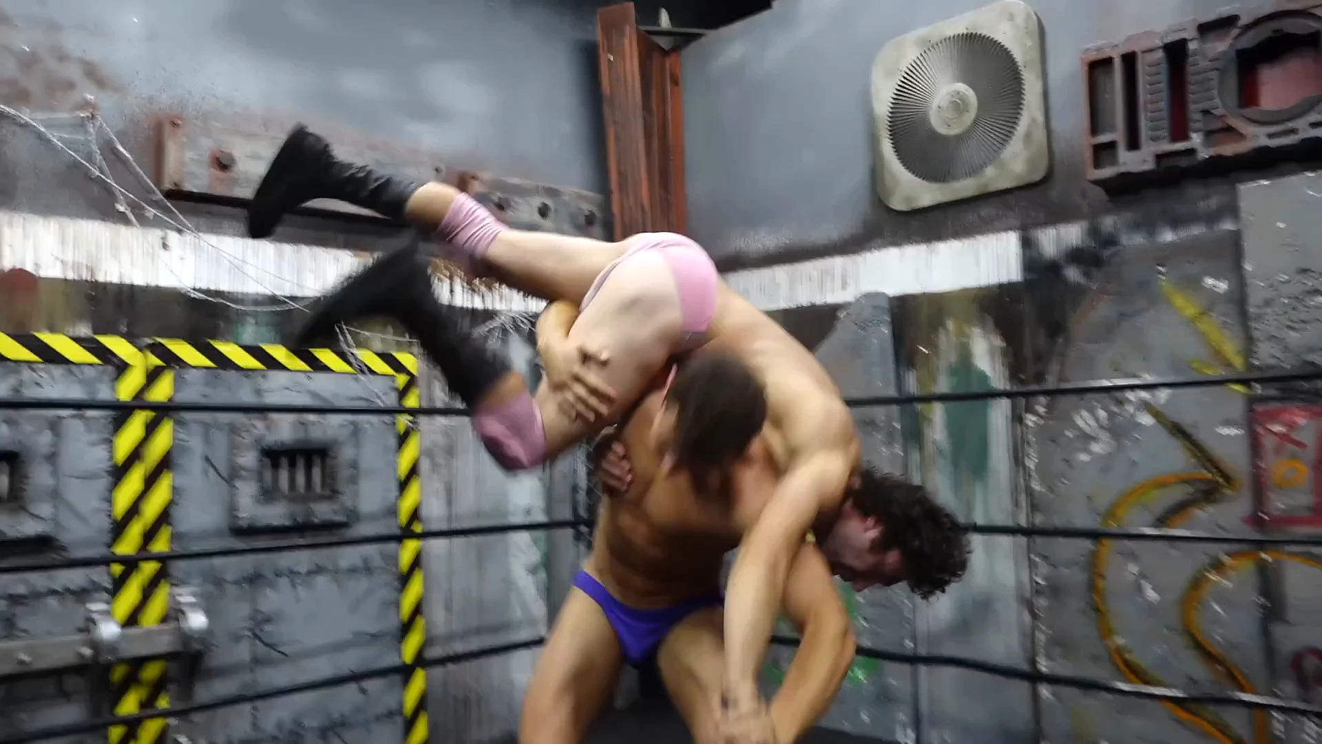 Zach and Travis are facing other in the ring. There is just one thing that Travis can’t seem to get by, though - the sight of Zach’s pink speedo.