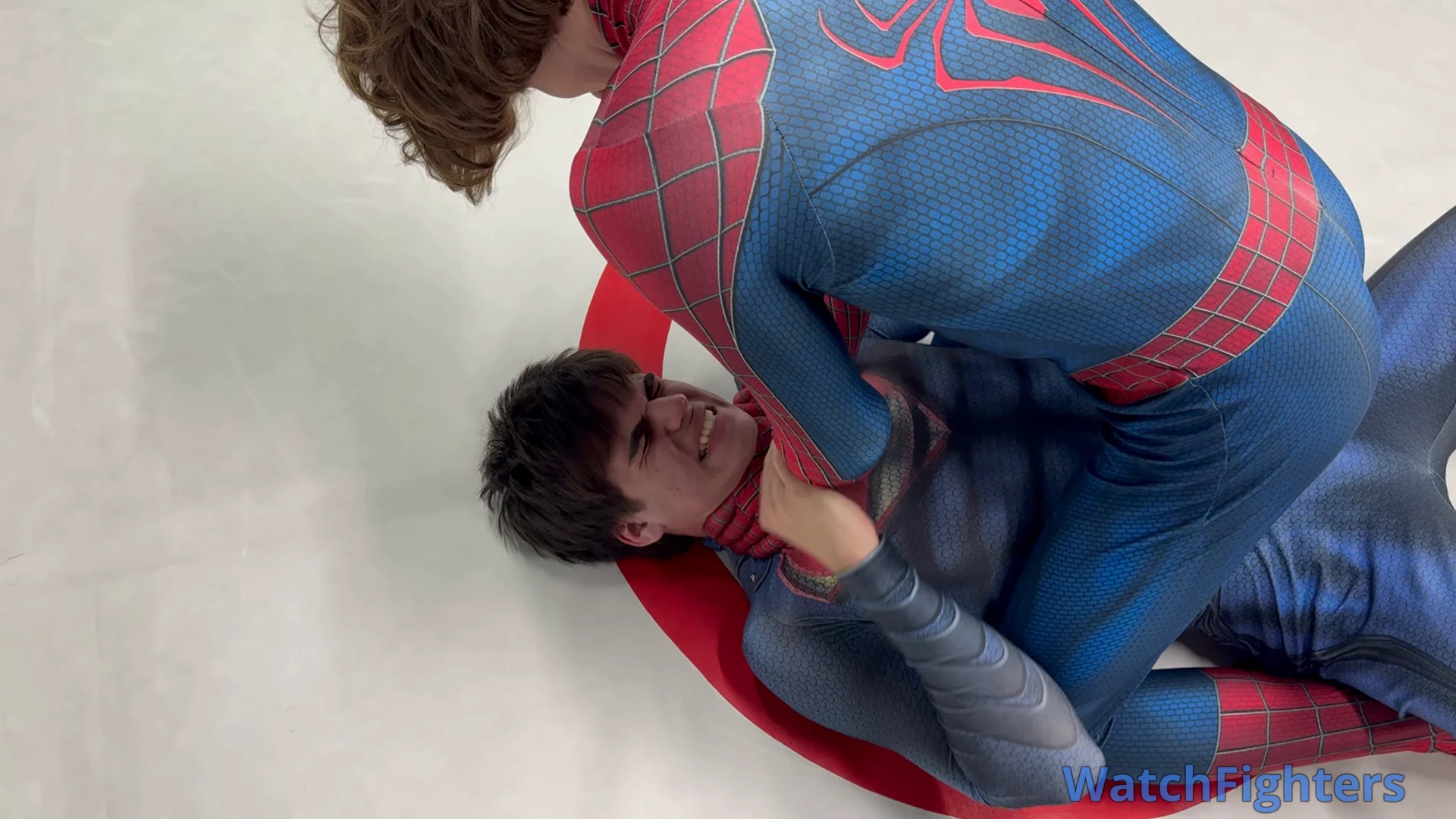 Total Weight Domination: The iconic image of Spider-Man standing with both feet on Superman's chest, using his full body weight to press the last breath from the hero's lungs.