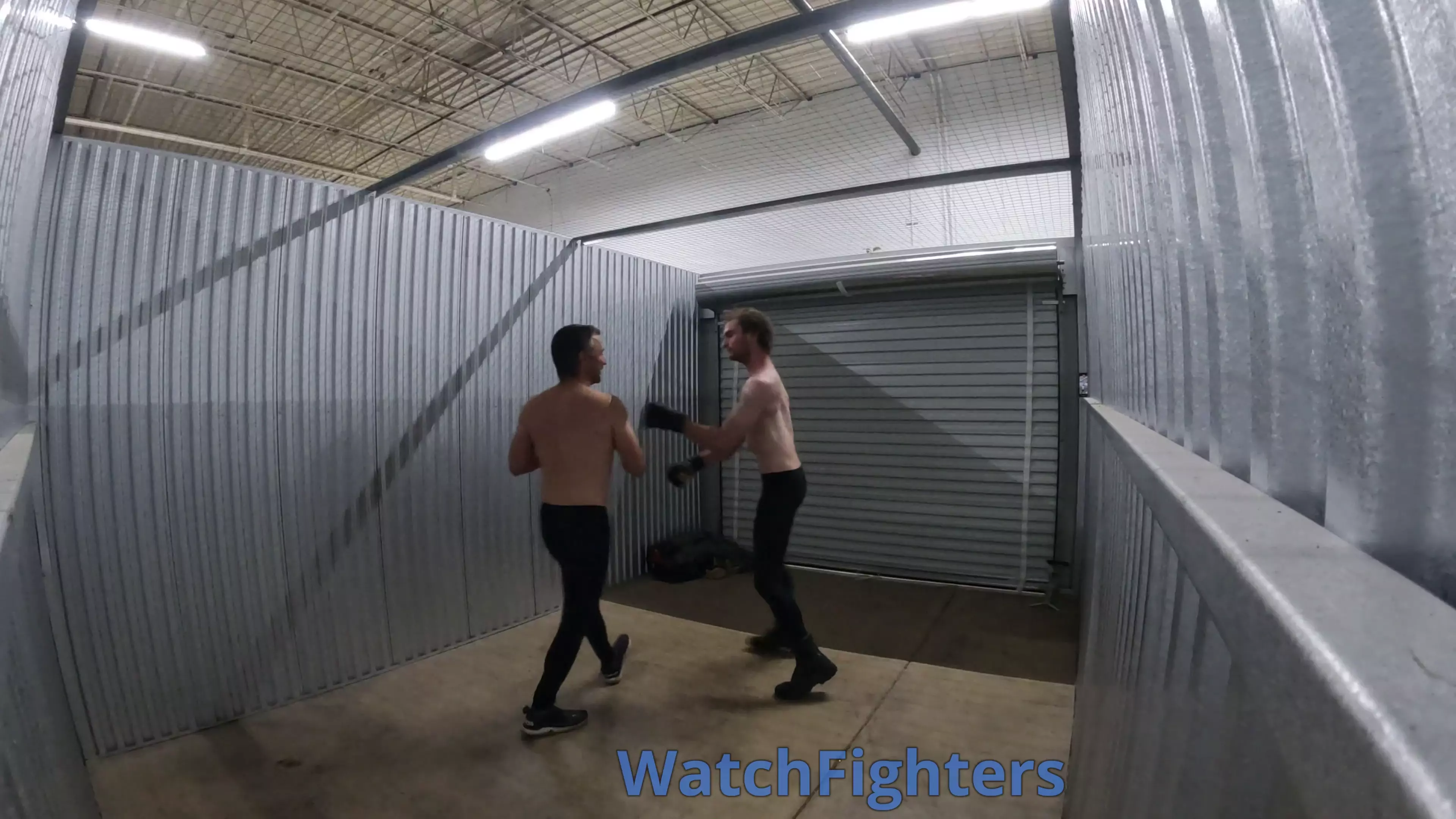 looking for a spot to fight, we found an empty storage locker, rip off our shirts and duke it out in grappling gloves