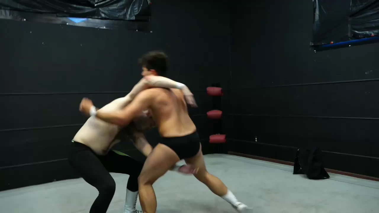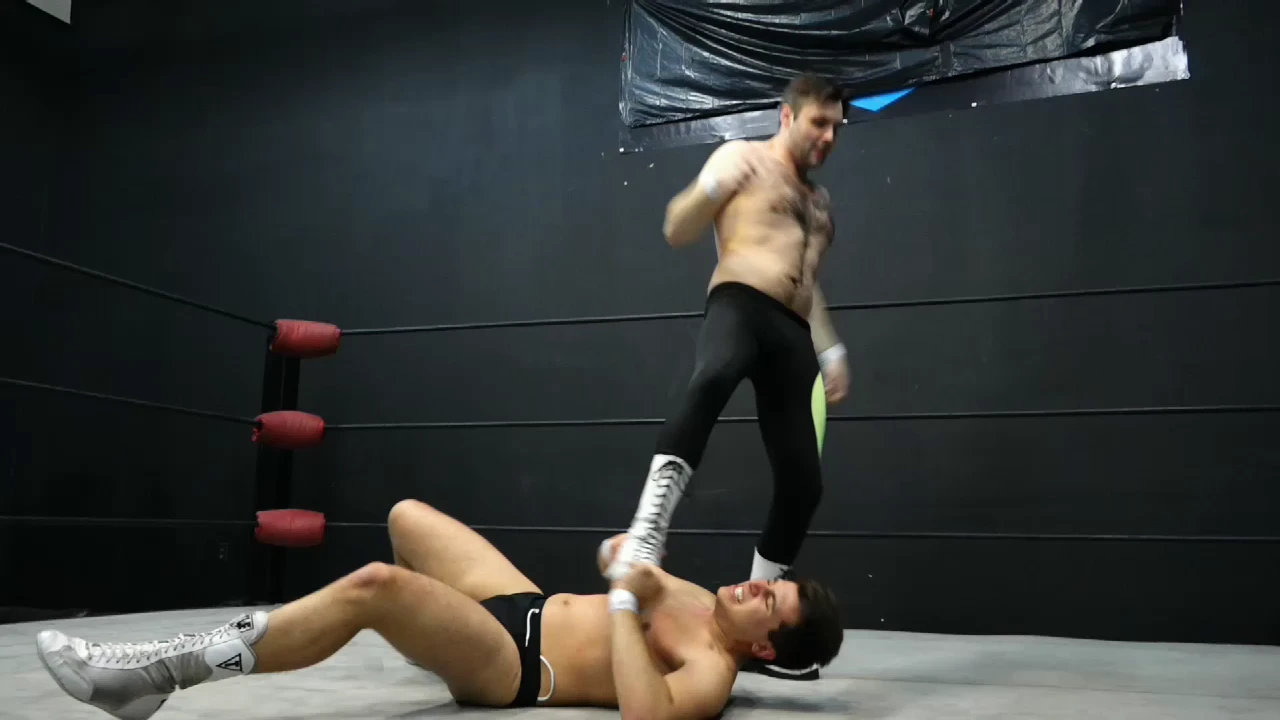 Wait until the greenhorn snaps! Now little bro tries to take big brother down. But he's fighting against feet, finger nails, and figure fours. Chests are beaten. Faces get buried in balls and armpits. Headlocks leave opponents gritting their teeth in agony. It’s one humiliation after another in this battle of two angry Average Joes!