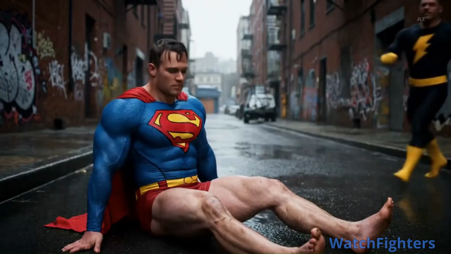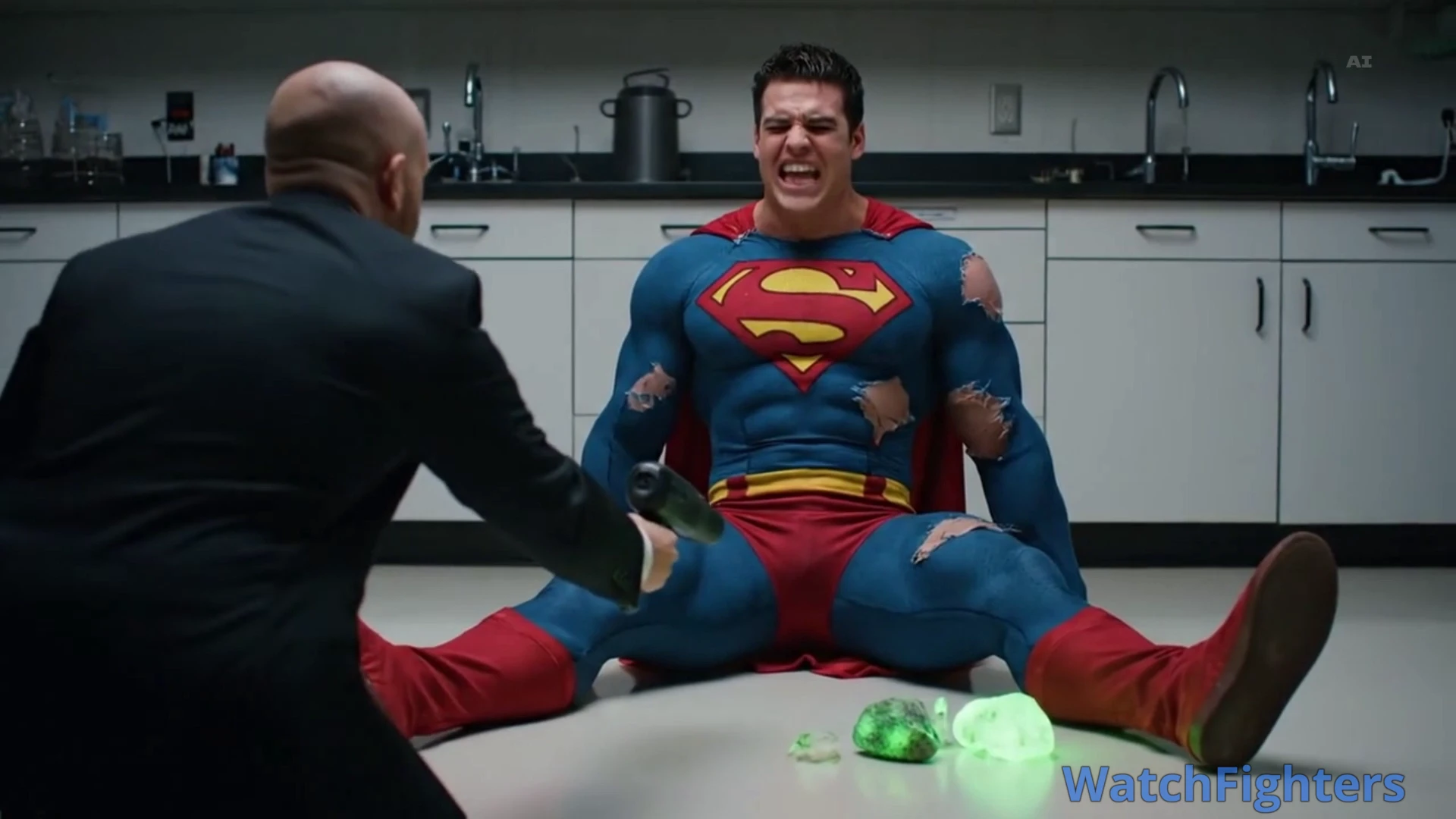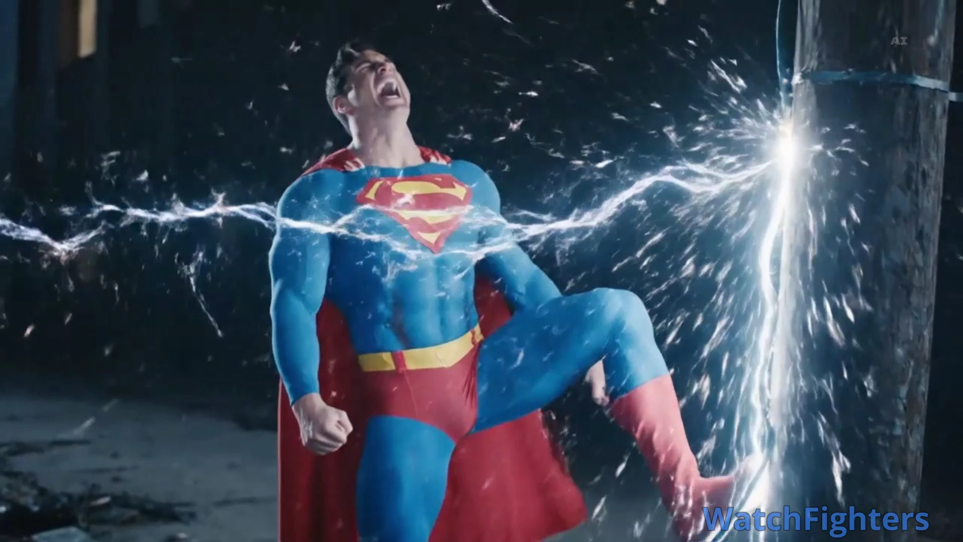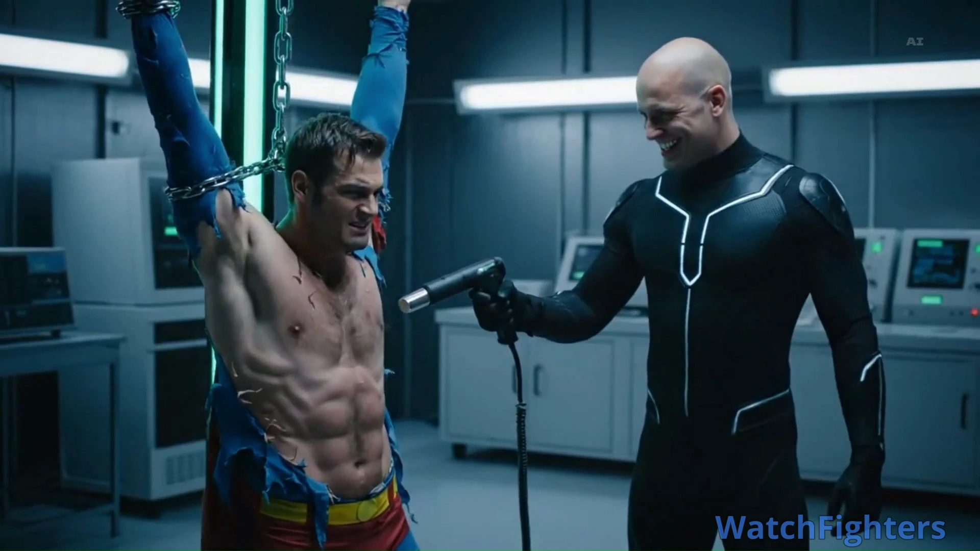 AI Video of multiple parody clips of Superman getting electric shocked. With dialogues (some are repeating), but no story or scene order, but a lot of AI handsome men, domination, muscles, bulges, shirtless Superman, and some nudity with other superheroes.