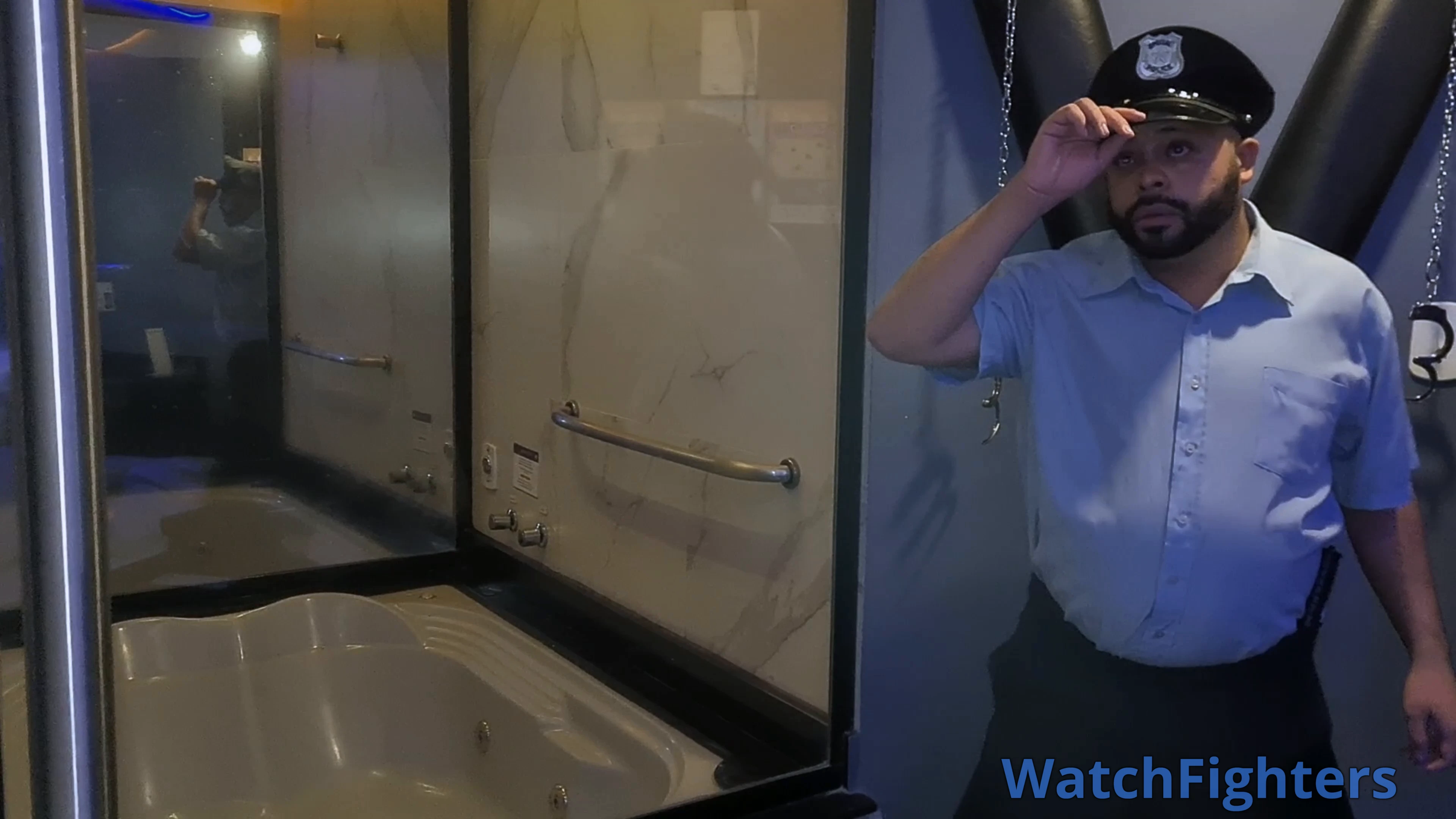 On a mission inside a hotel room, Bear Cop is focused on tracking down a suspect.