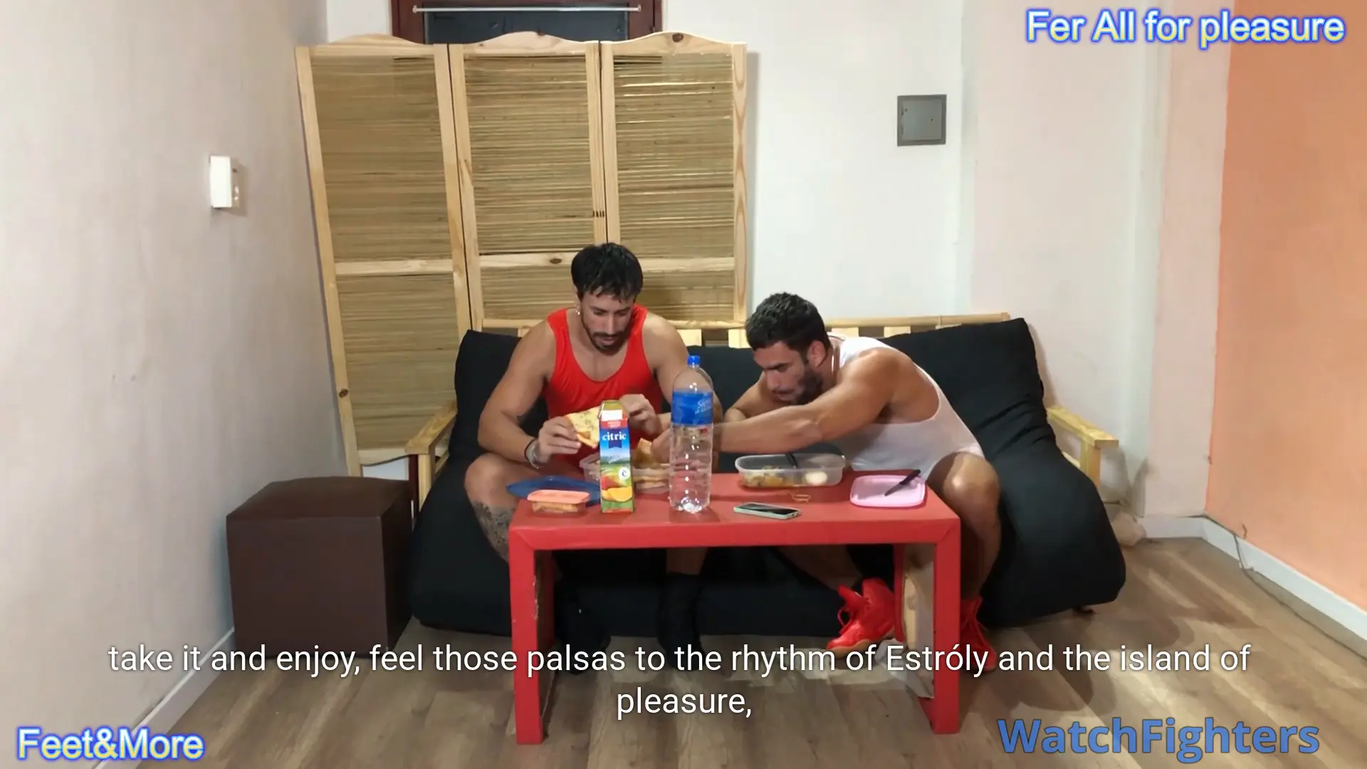 "Now be two wild bulls and fight." They both scratch the ground with their legs and neigh, and then they begin to fight wildly like bulls. Fer takes out a T-shirt and bullfights them. "The winner gets food."
