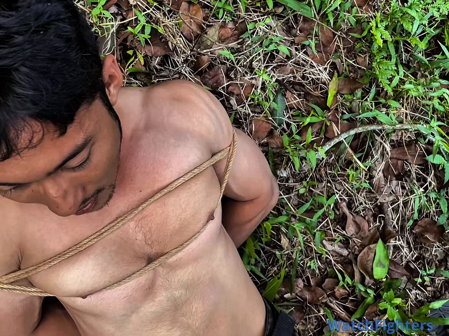 He was finally released from the tree only so that his body was rained down by punches and kicks! Then he found himself in an abandoned building, tied to a wooden rack and there his get captive continued.