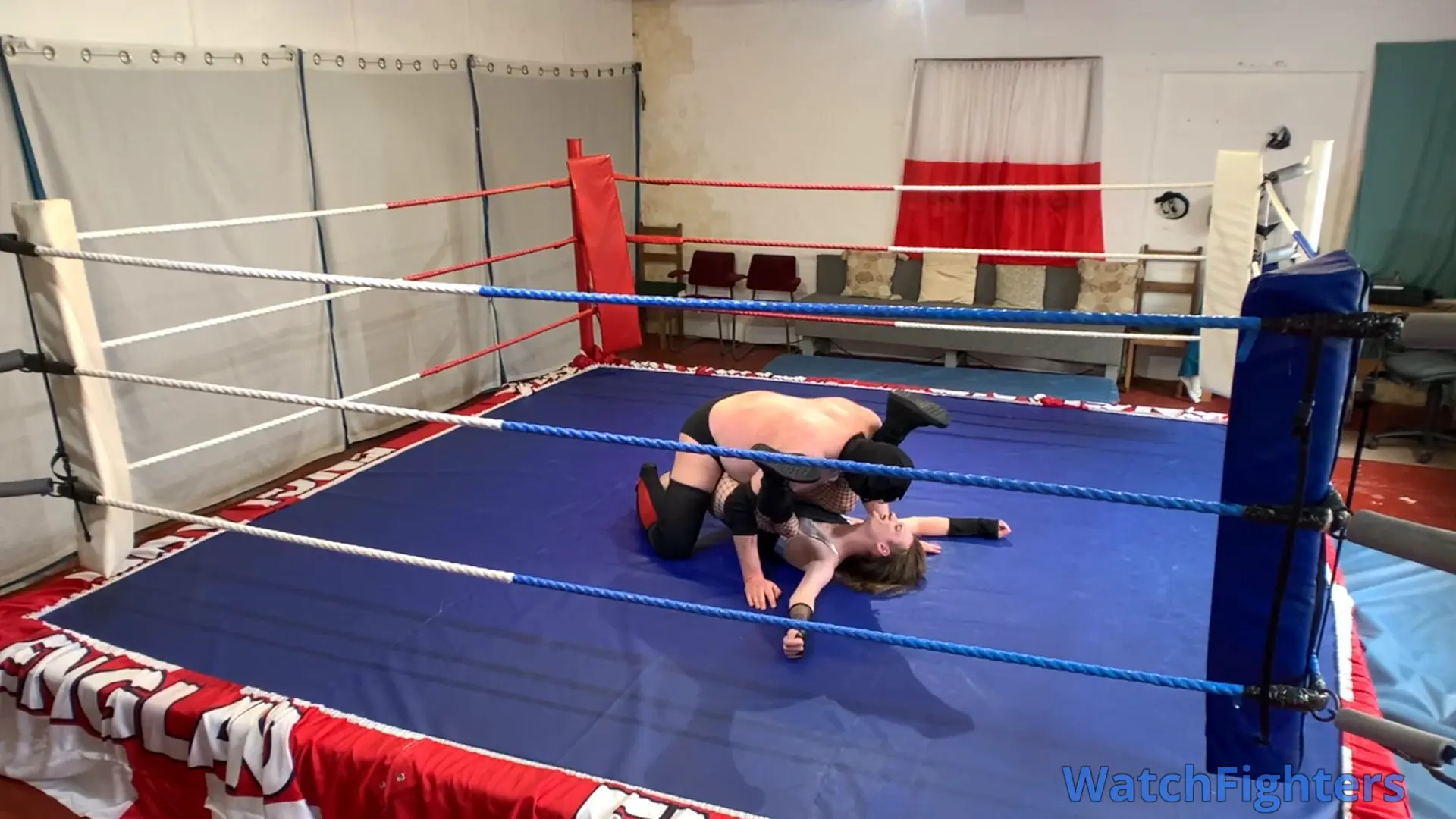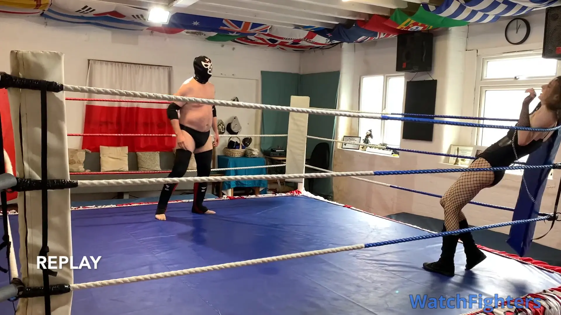 Action from a pro style mixed wrestling match featuring trans female wrestler, Skyler v Ghoul held at TWF Manchester.