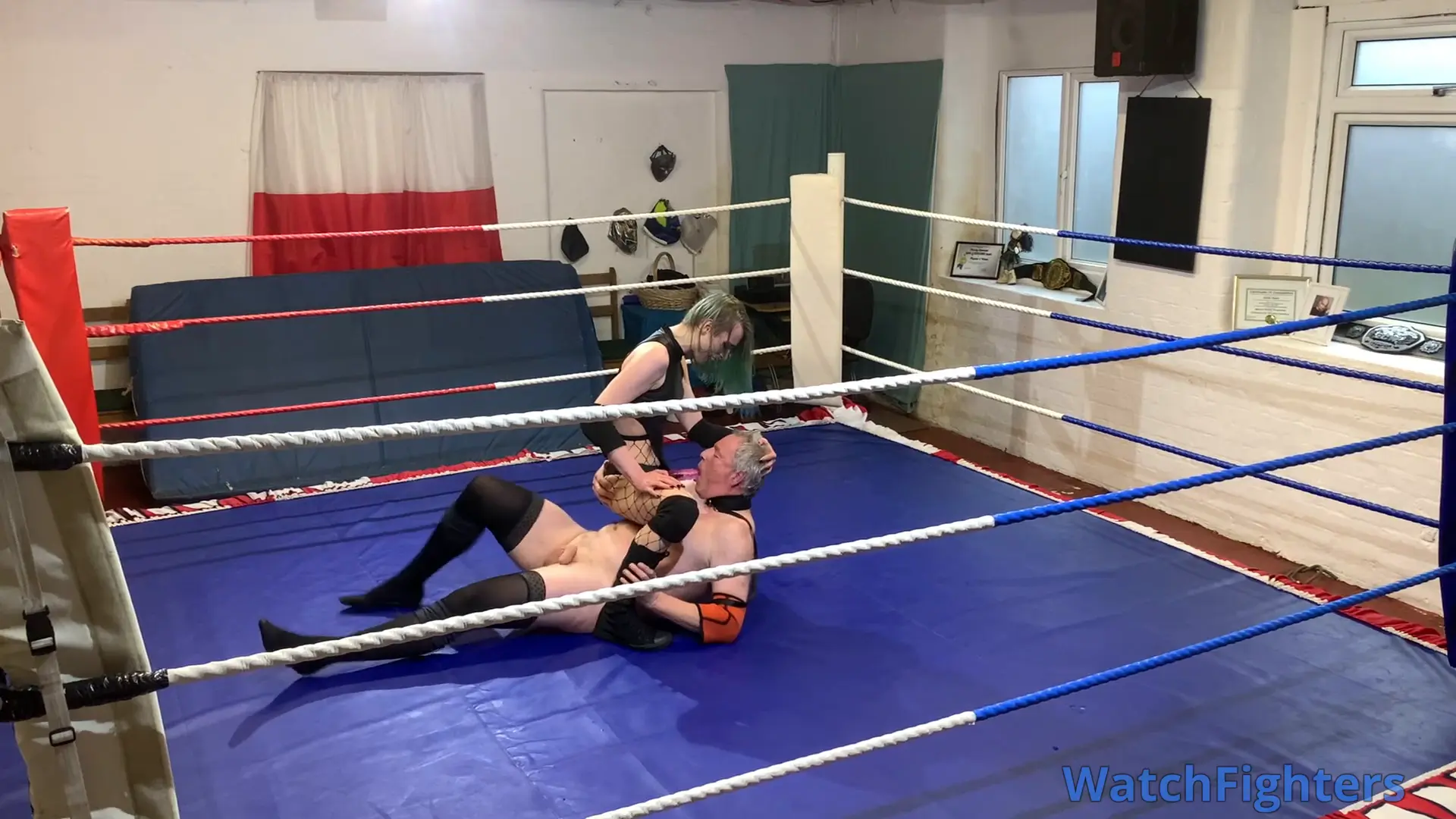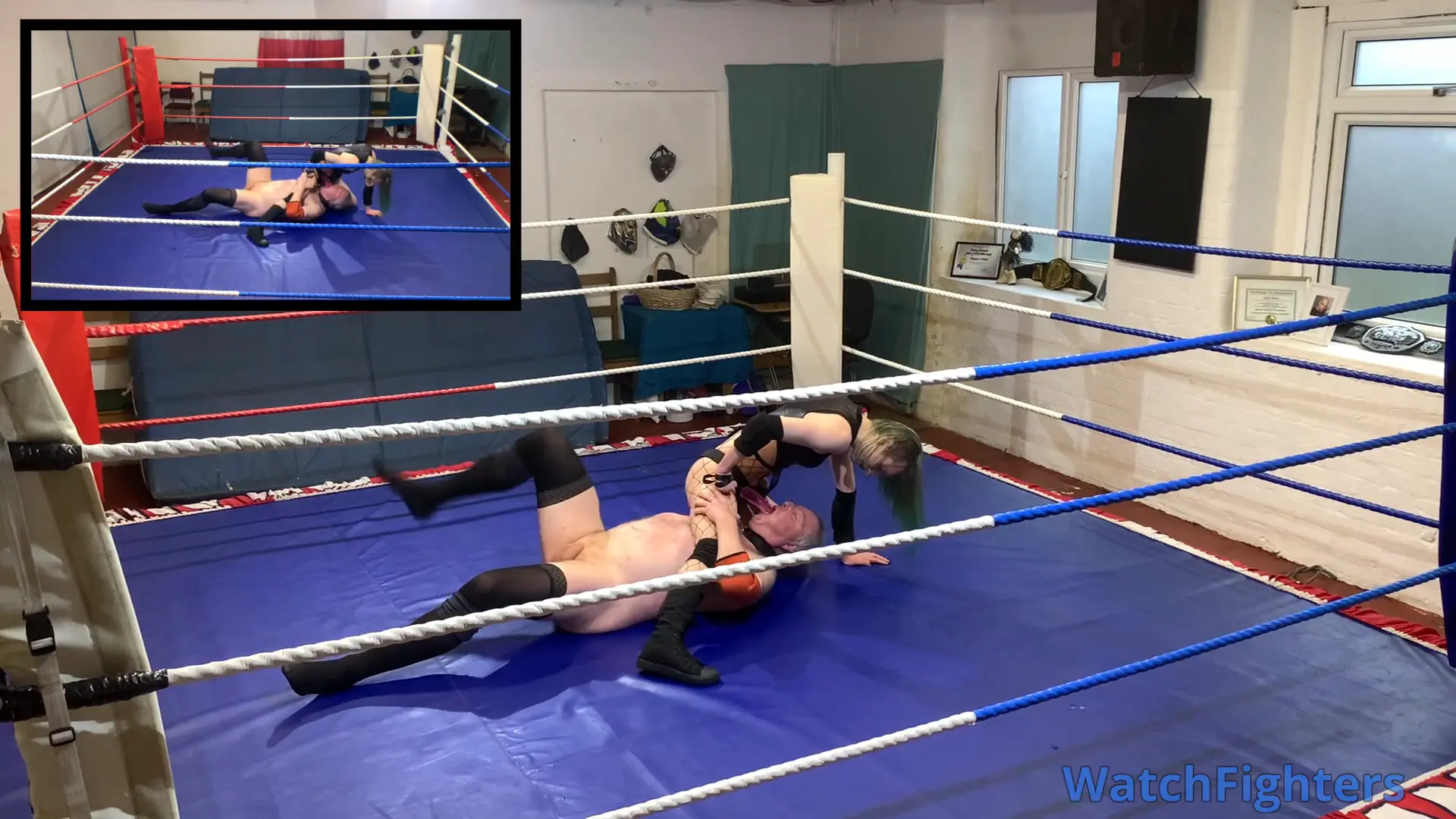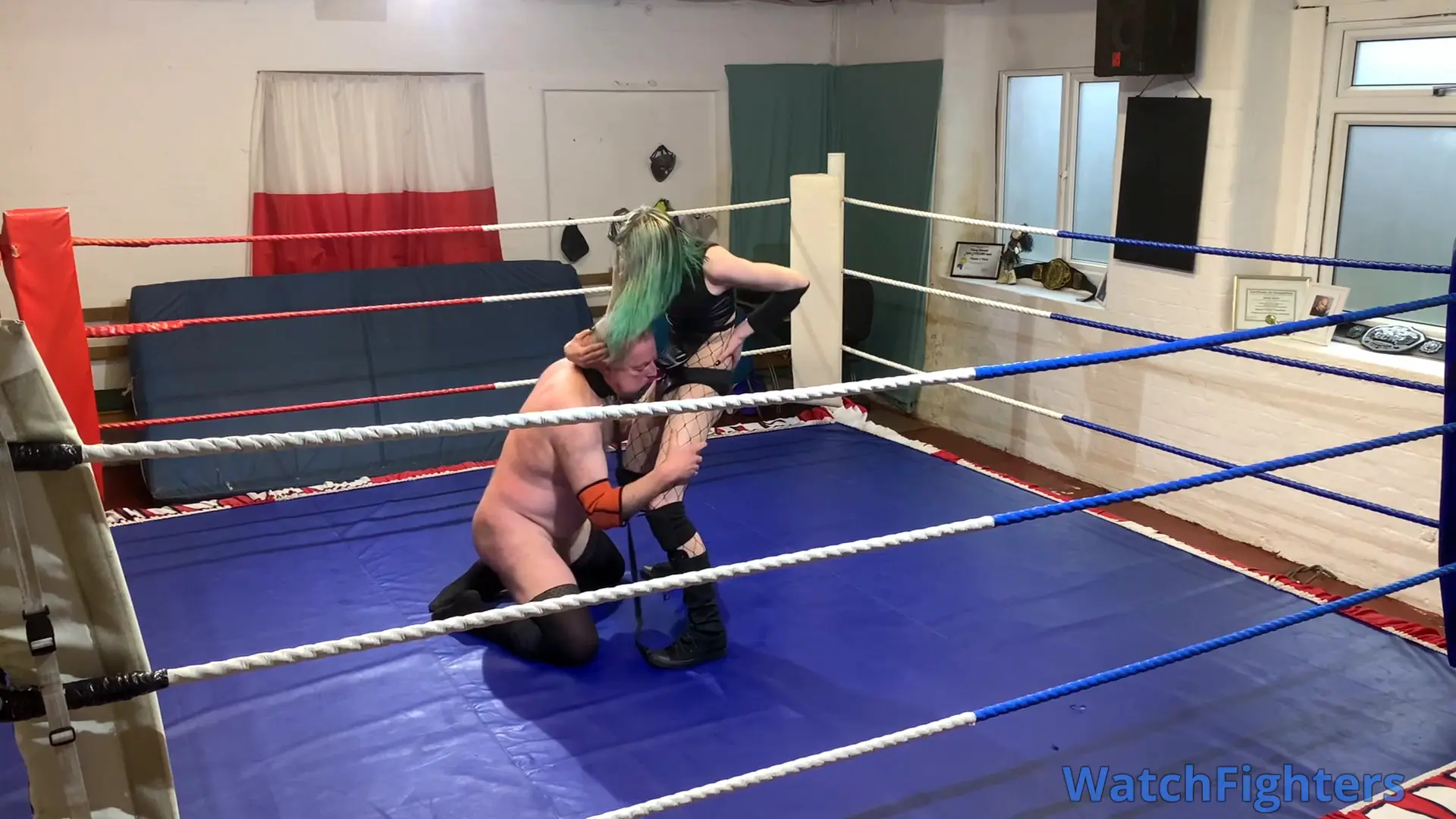 Carrying on from a long running feud between them, action from a pro style (CFNM) mixed match featuring the trans female Skyler v Stephen held at TWF Manchester.