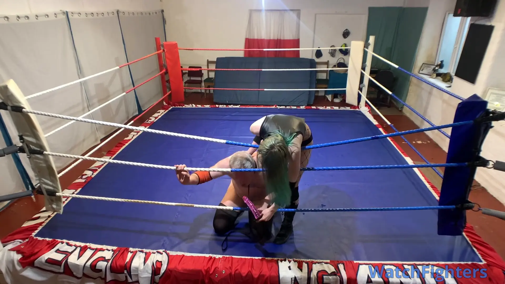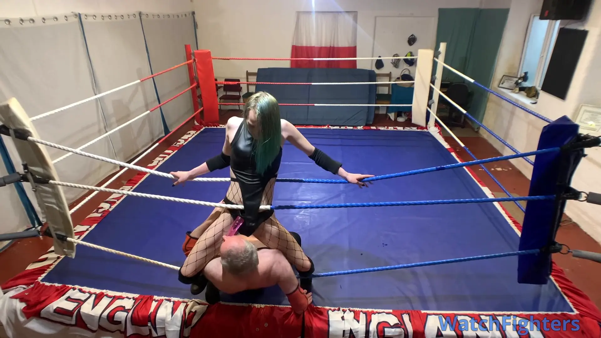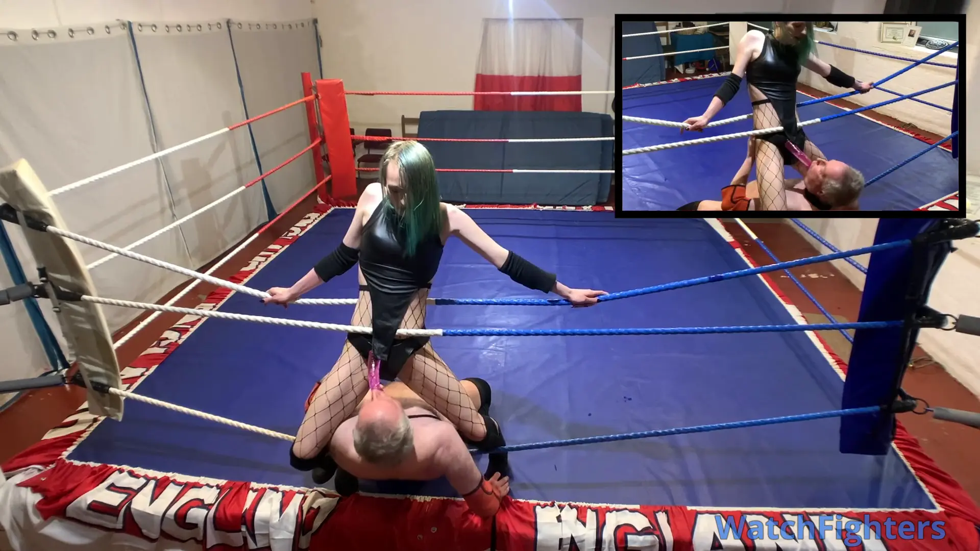 Carrying on from a long running feud between them, action from a pro style (CFNM) mixed match featuring the trans female Skyler v Stephen held at TWF Manchester.