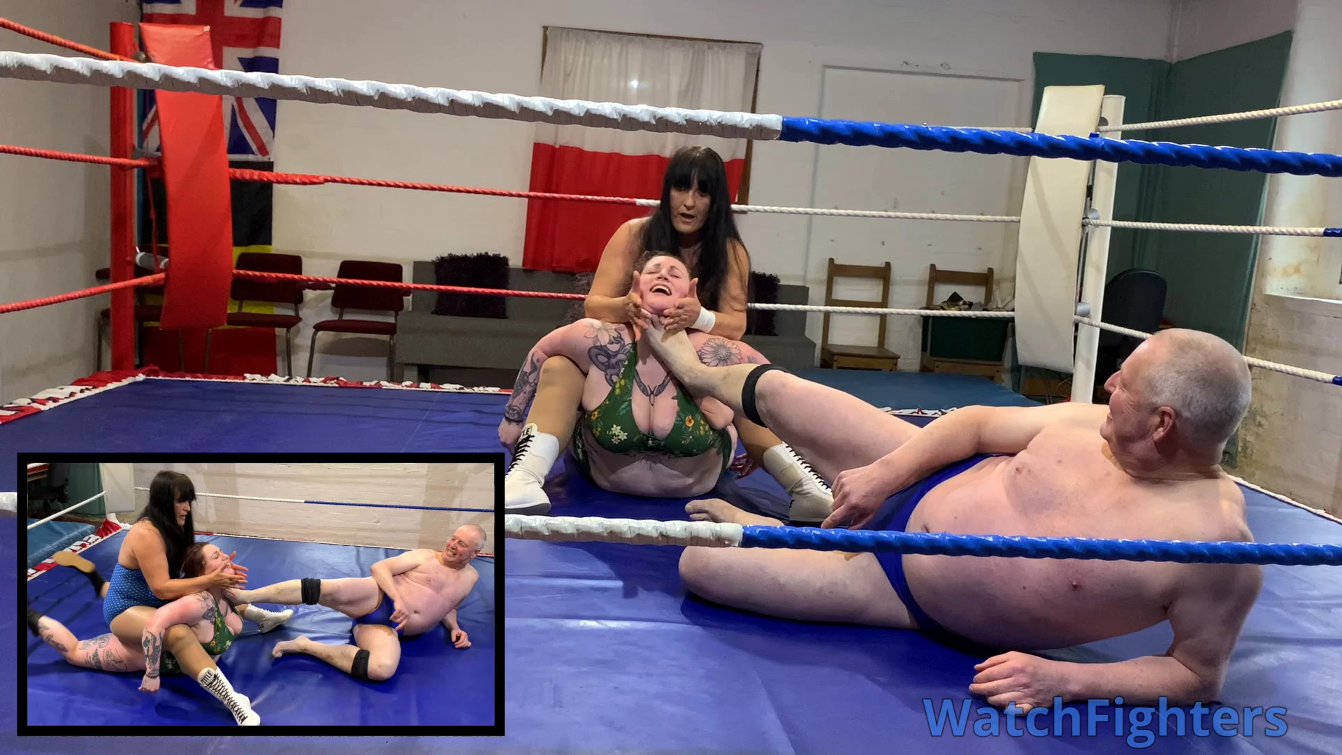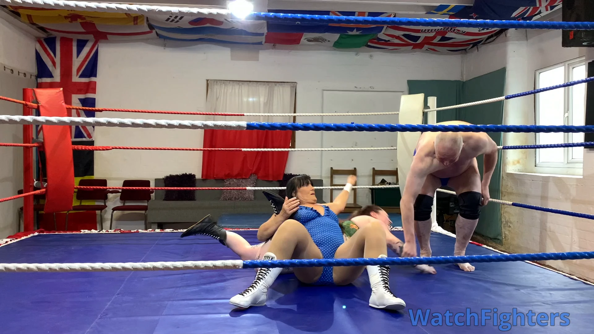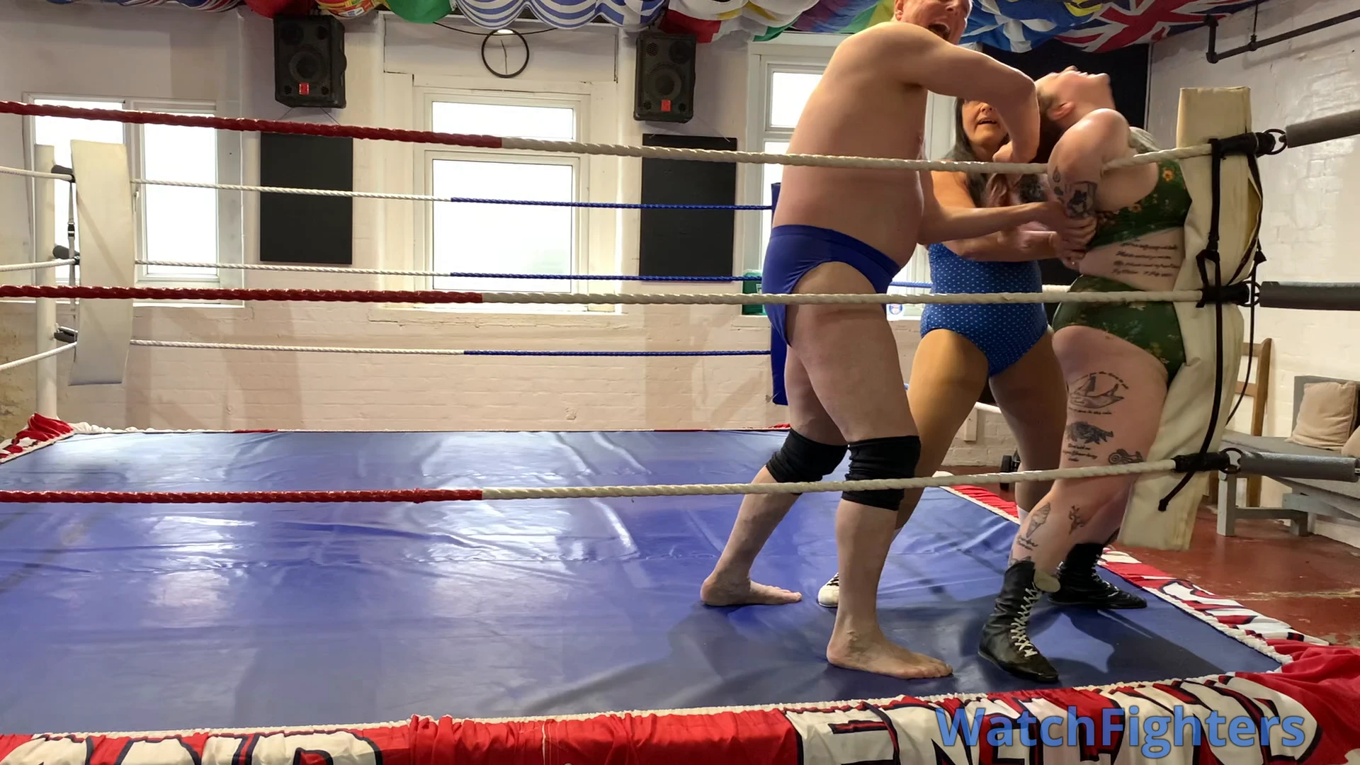 Action from a pro style mixed wrestling tag team match featuring the mixed team of Pippa & Stephen v Bambi held at TWF Manchester.
