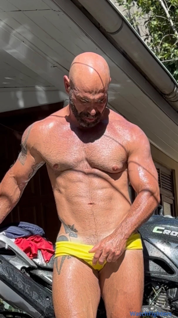 I went to the beach and after seeing so many beautiful bodies, I ended up getting so horny that when I got home I decided to wash my motorcycle and played around until I finished.