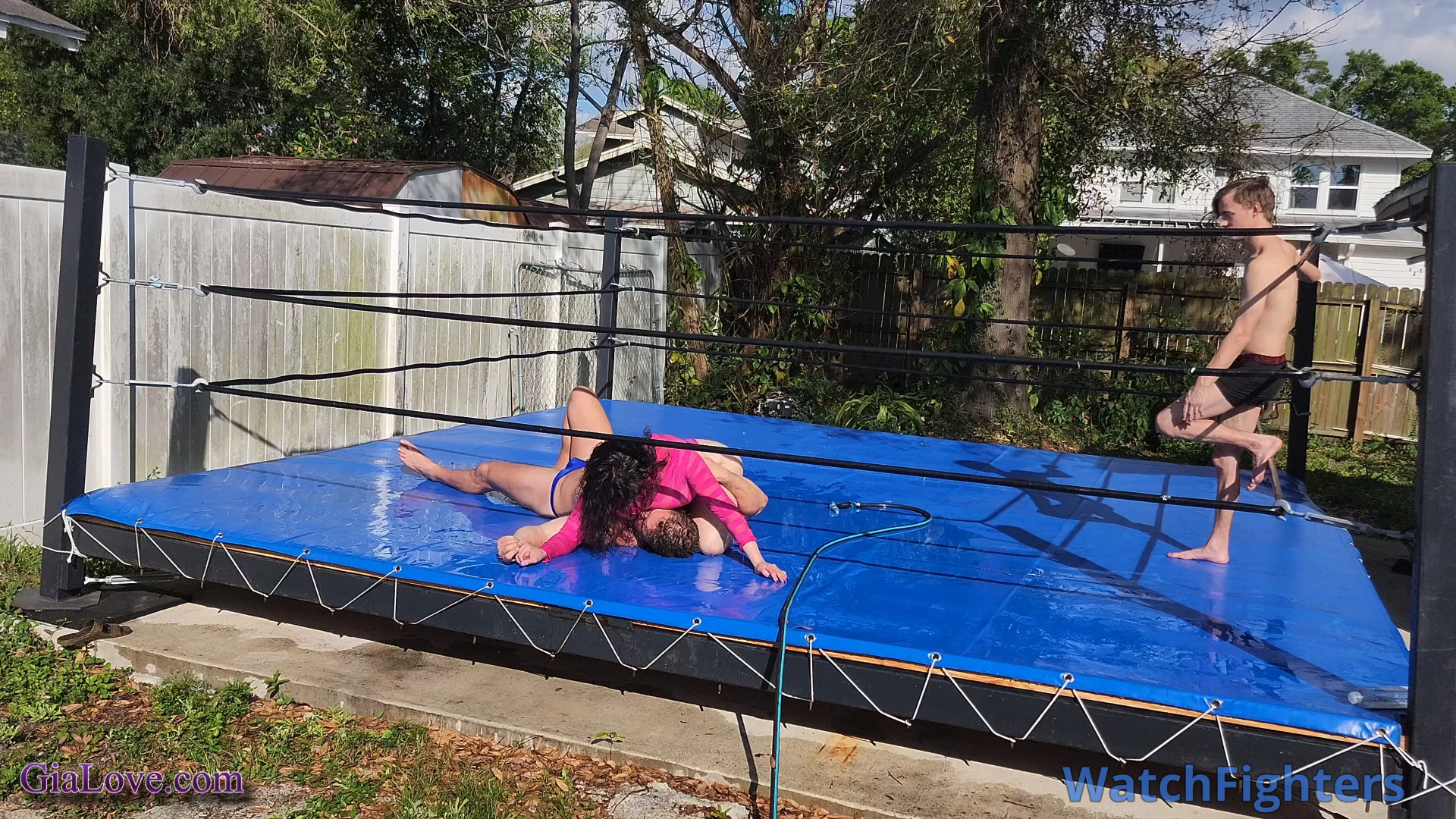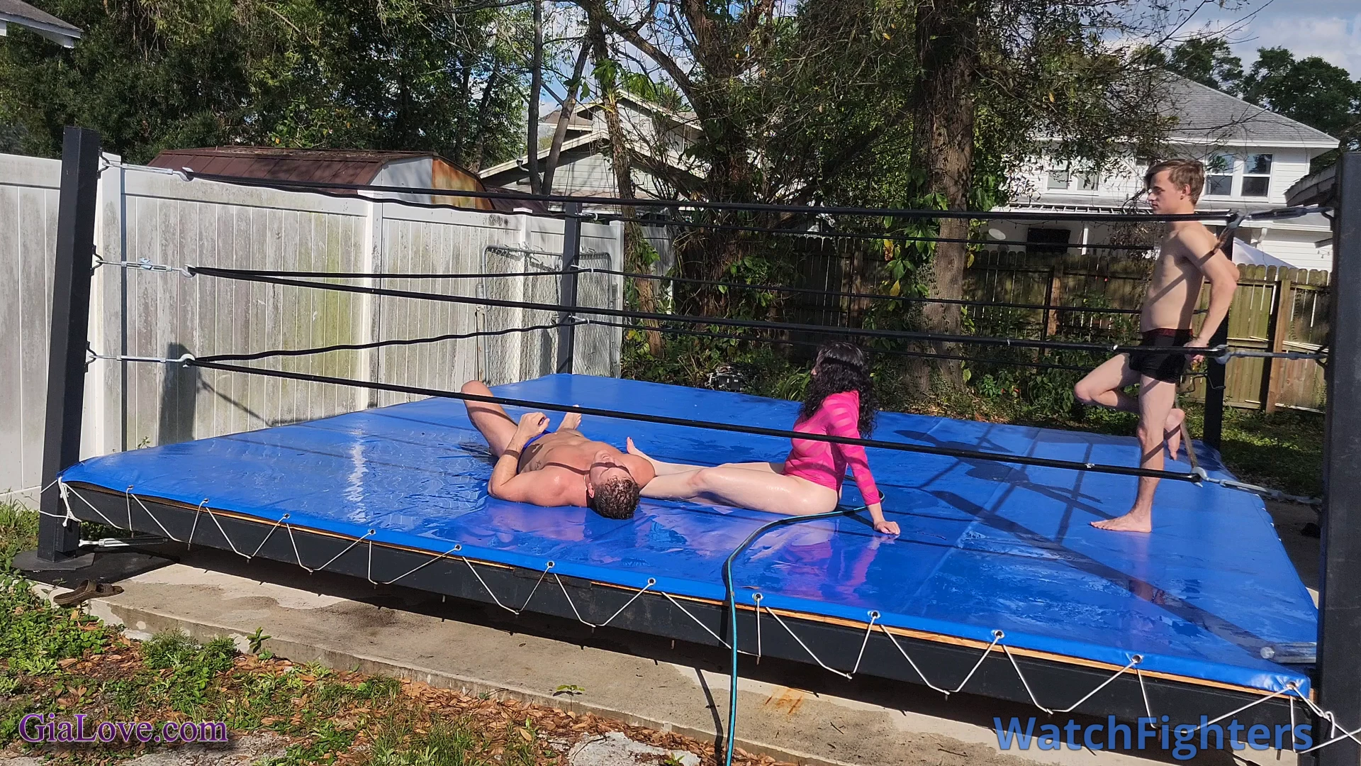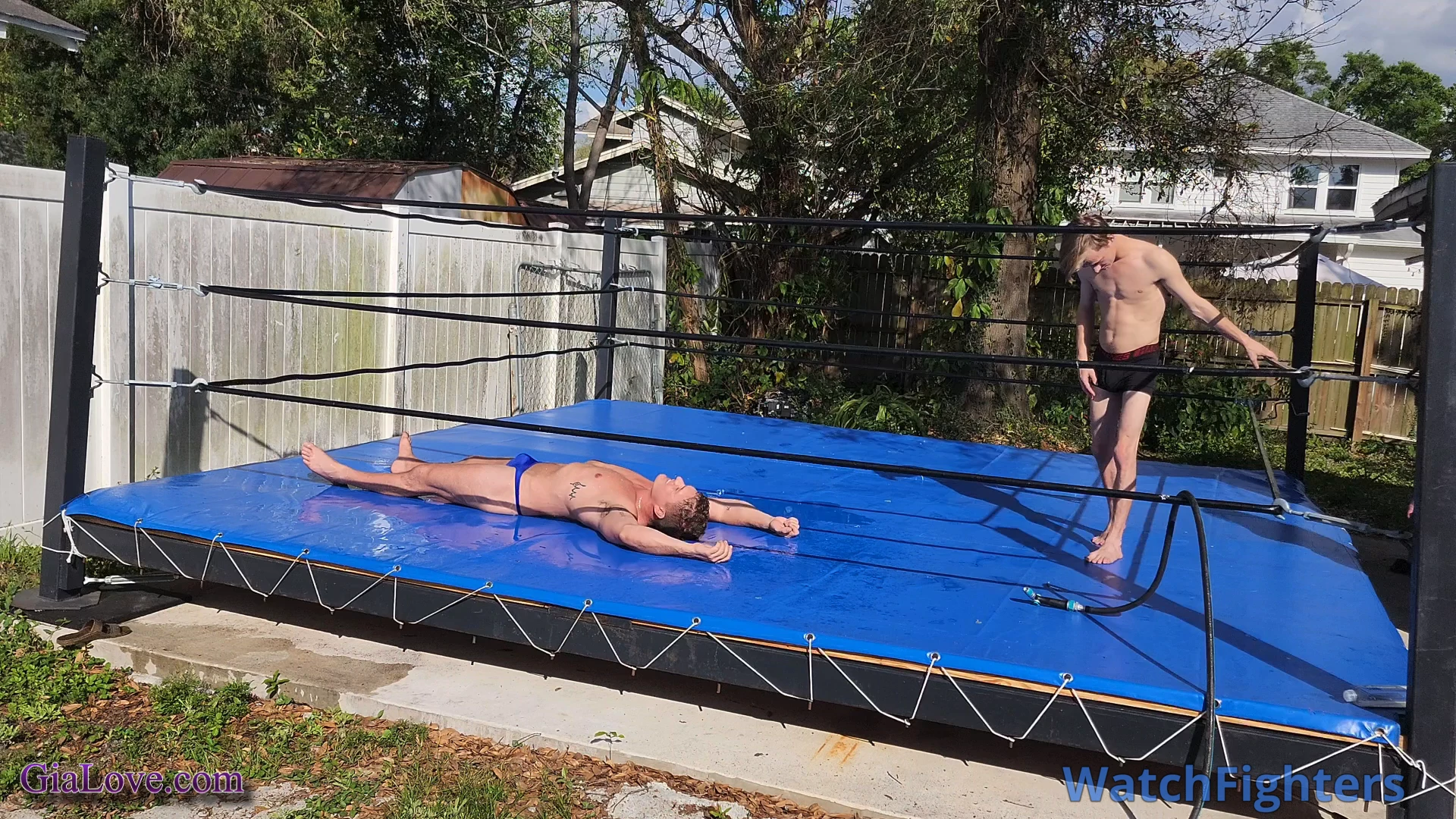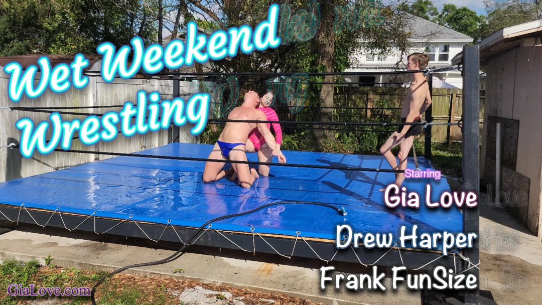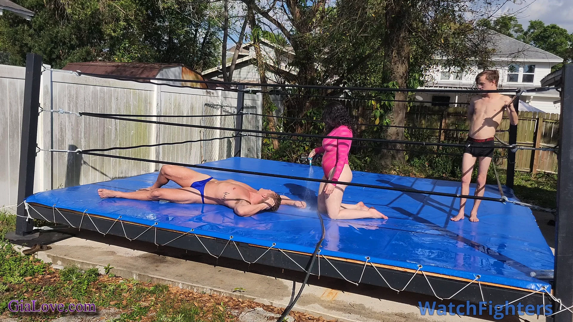 Gia taunts/teases Drew, while Frank watches from the sidelines, as she hoses him down. Once Gia has had her fill of that, she takes the chance to work Drew over & practice some of her favorite wrestling moves on him. Of course, she couldn't leave Frank out of the fun & brings him into the mix at the end. What are you doing to stay cool this summer?