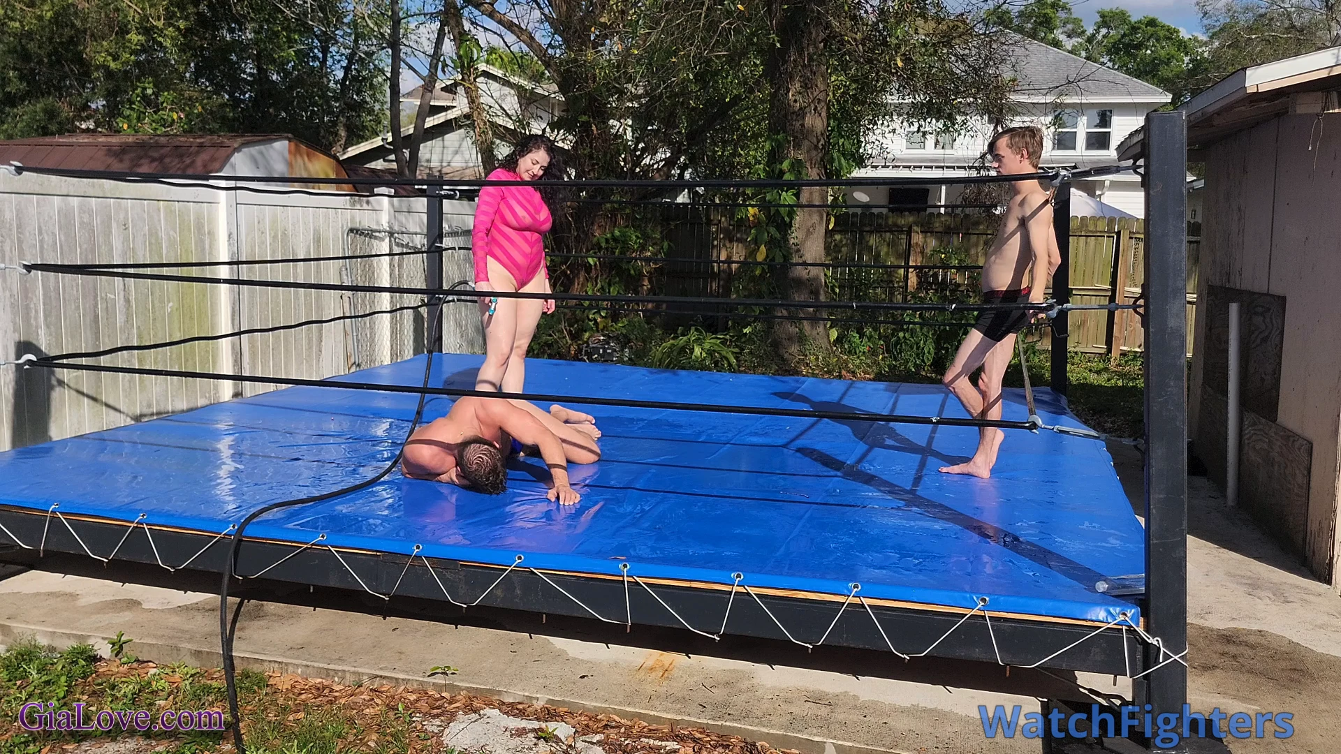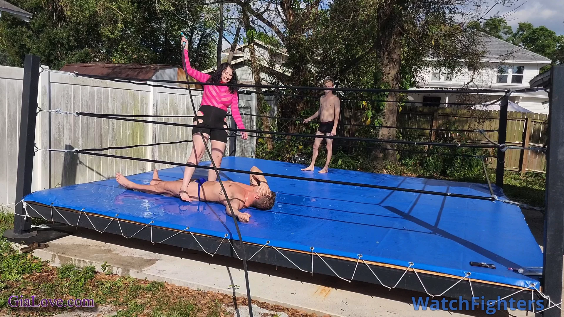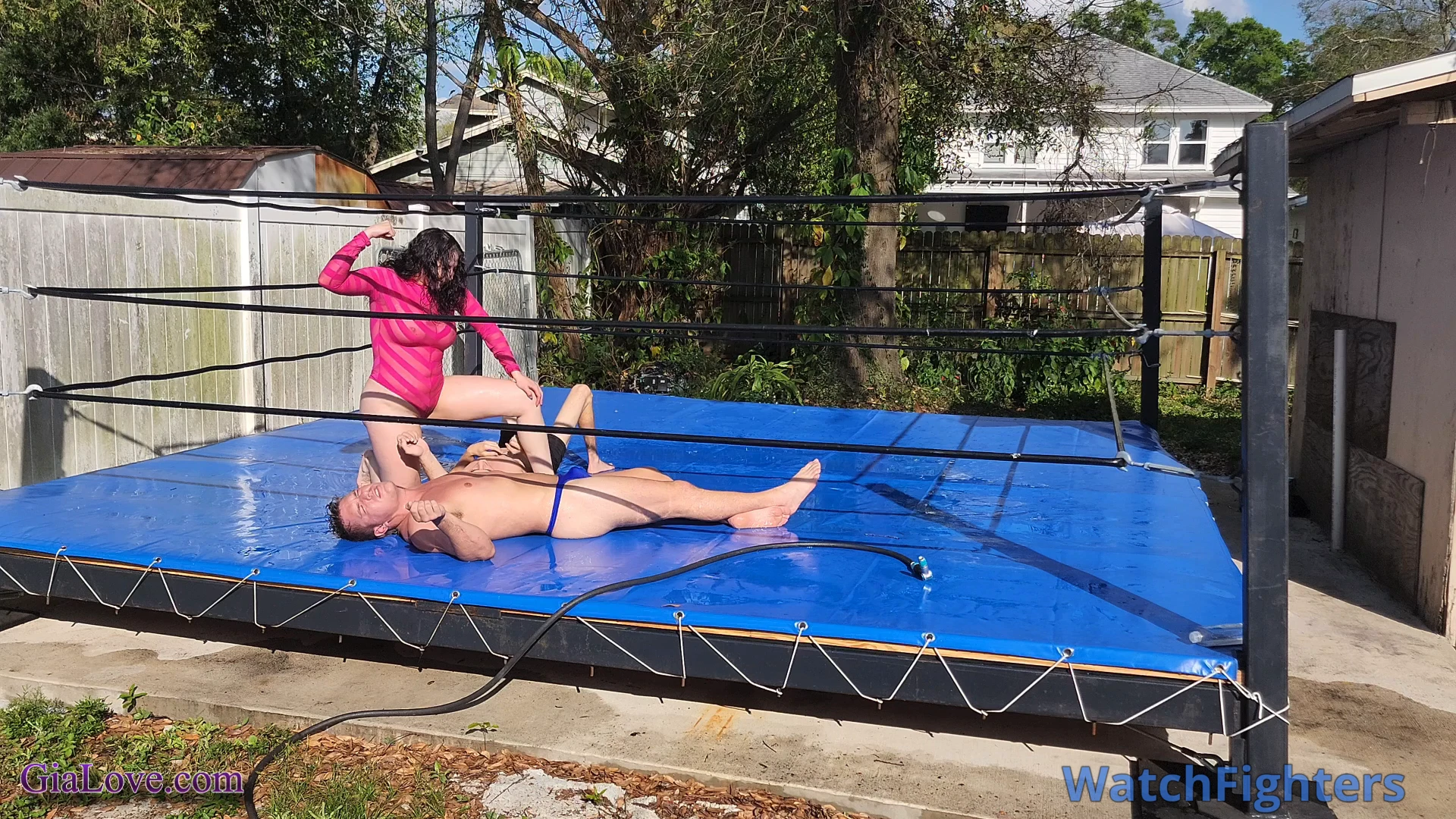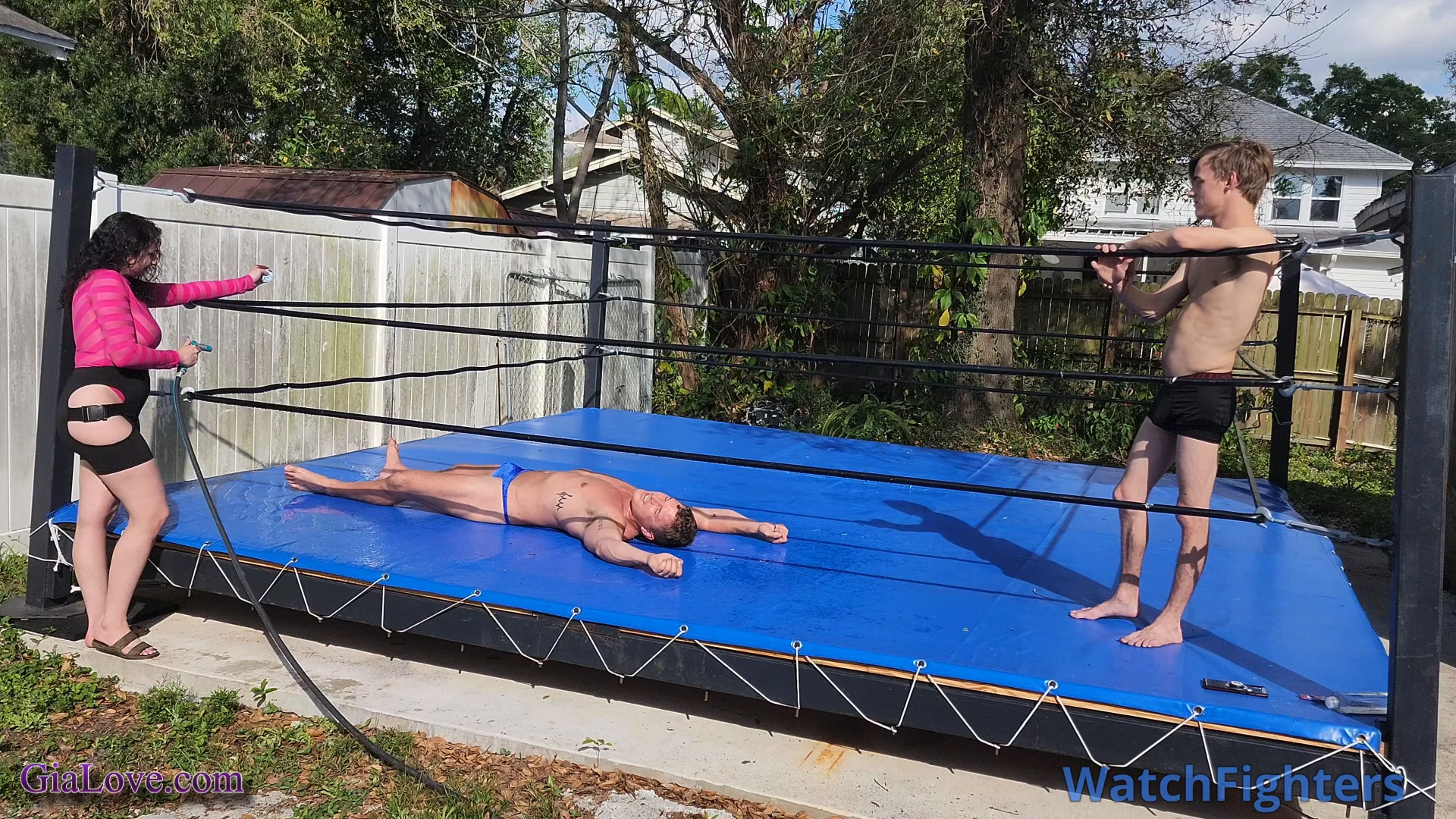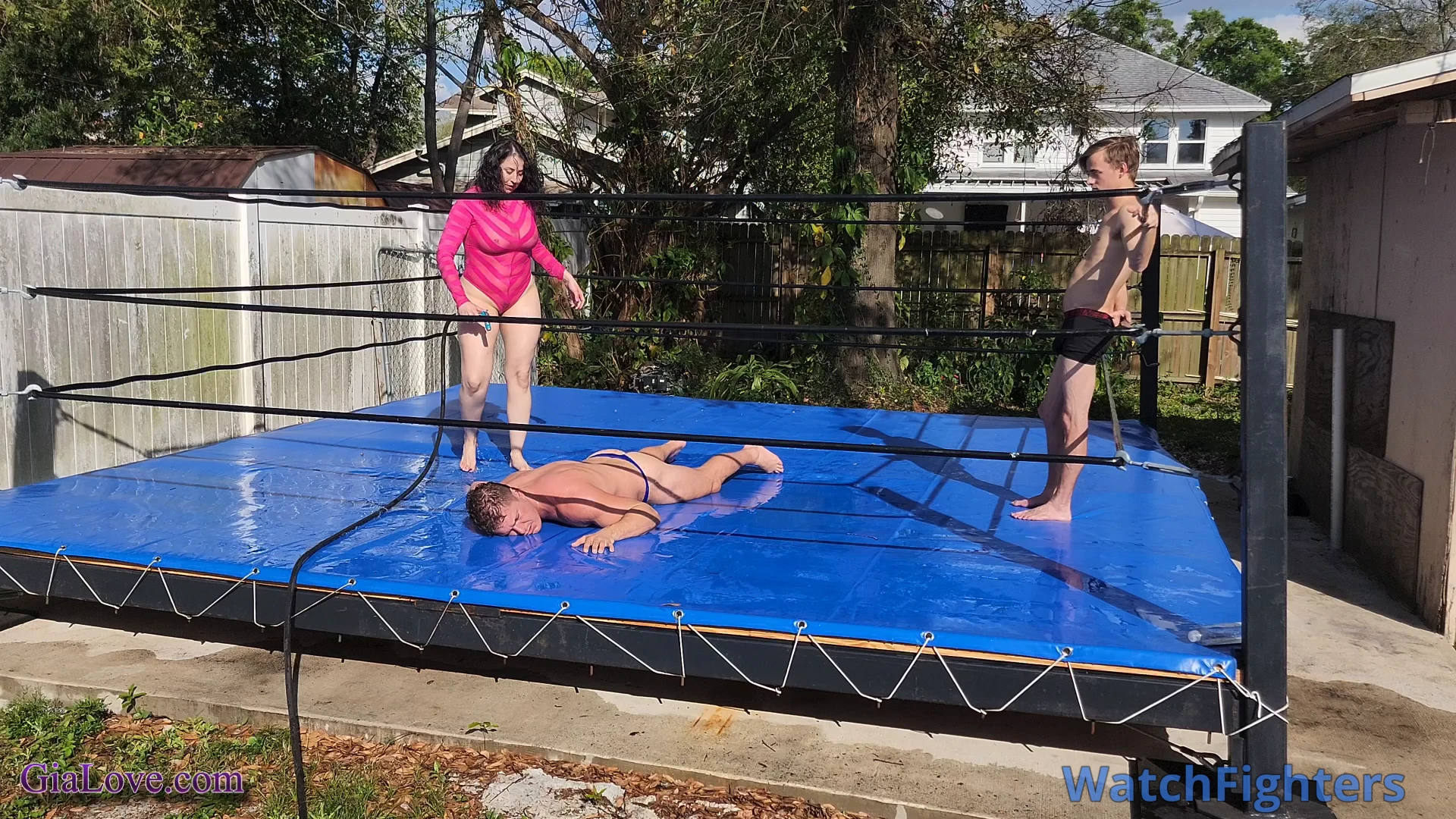Gia taunts/teases Drew, while Frank watches from the sidelines, as she hoses him down. Once Gia has had her fill of that, she takes the chance to work Drew over & practice some of her favorite wrestling moves on him. Of course, she couldn't leave Frank out of the fun & brings him into the mix at the end. What are you doing to stay cool this summer?