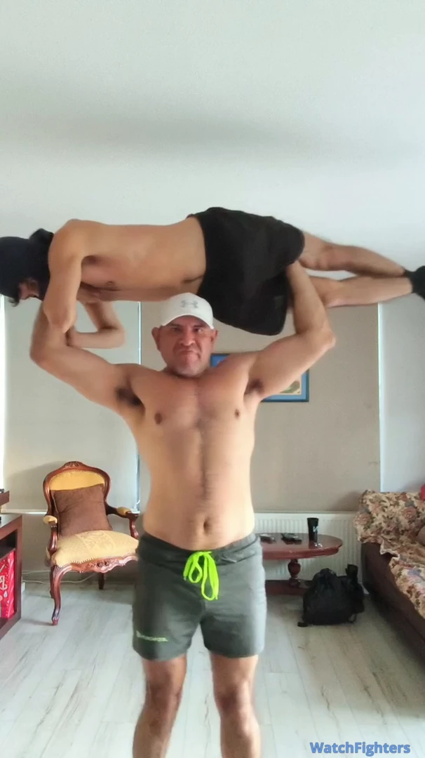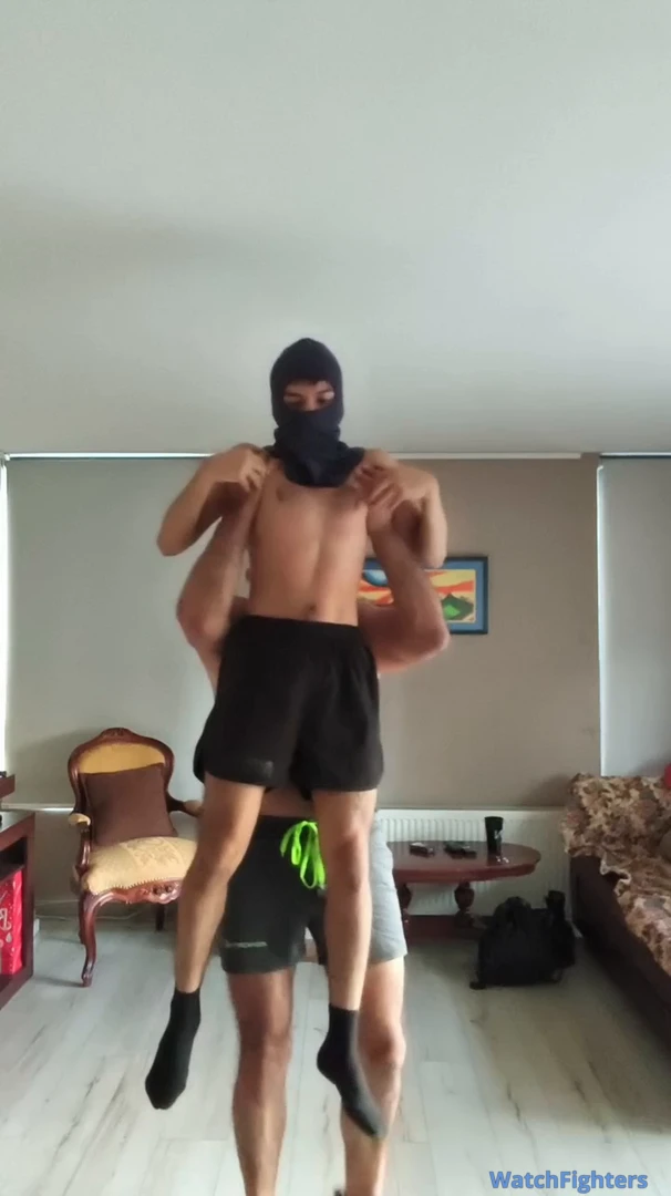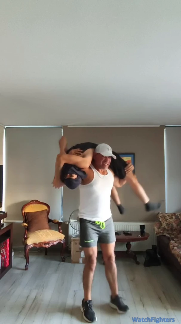 A masked Twink visited me today to worship me and get lifted in several ways. I bearhug him several times, and do shoulder carries, overhead presses, racks and lift him off the floor easily in other ways.