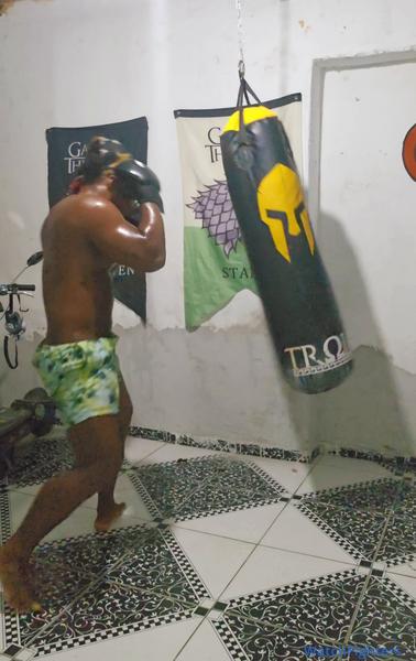Hot latin guy doing workout and and self-punching abs and hitting with a stick. Support us to get new videos with that model.