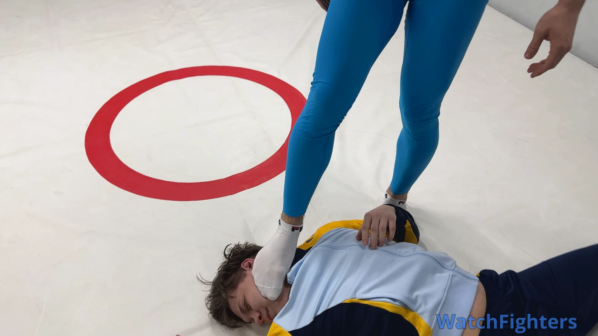 A professional jiu-jitsu fighter mocks and humiliates a football player using his legs; he manages to anger him and provoke resistance.