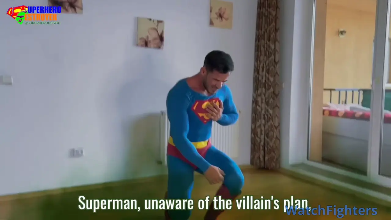 Superman is trapped in a empty room that👉 hits him with invisible rays and makes him hard to breathe👉 with his suit on ‼️so he decides to stripe his suit off ‼️‼️
