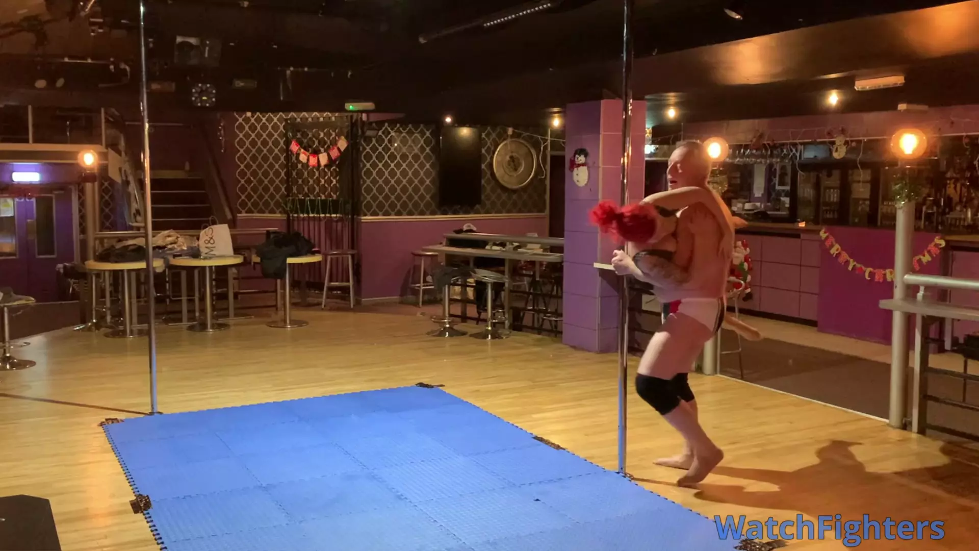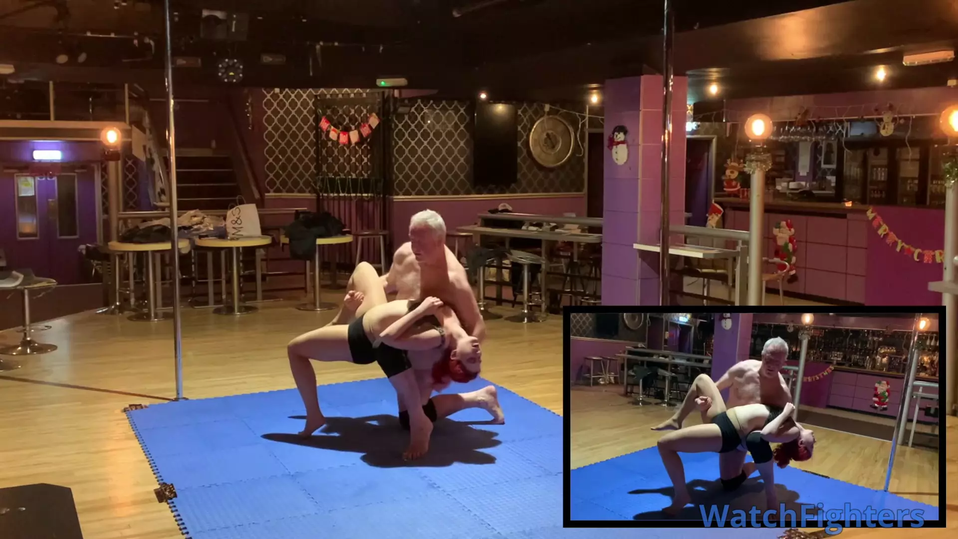 Action from a pro style mixed wrestling match featuring fetish model and session wrestler, Rosie Gia v Stephen held at XTA.