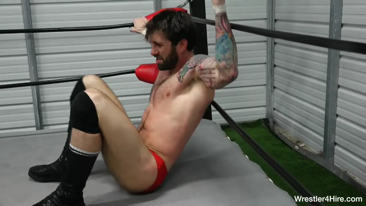 Soon Karn is eating the floor with Daxx riding his back in a sweaty pin, which gets worse when he wrenches Karn’s arms into impossible positions. Hot and hairy Karn is left gasping on the mat, his body explored seductively by the camera and he pleads for mercy...but the worst is yet to come.