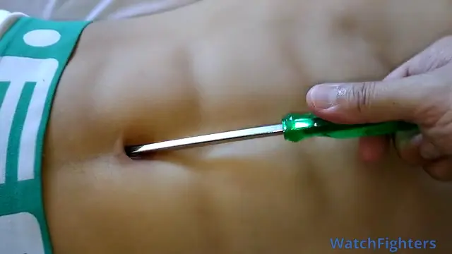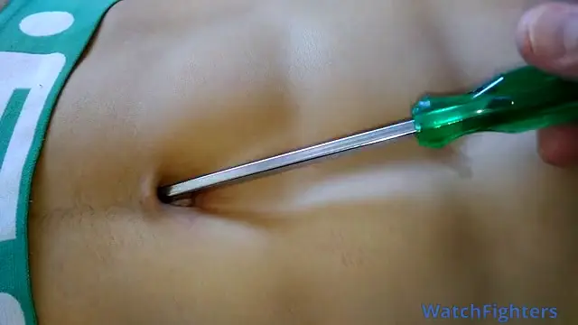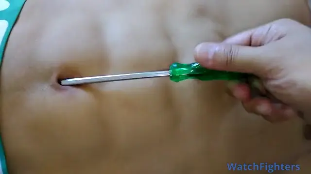 Calvin Role Play Navel Bellybutton Screwdriver Closeup View