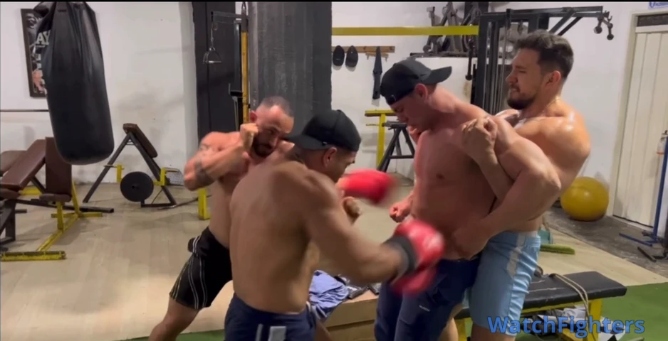Chicos en una gran pulsada de manos y fuerza descomunal
