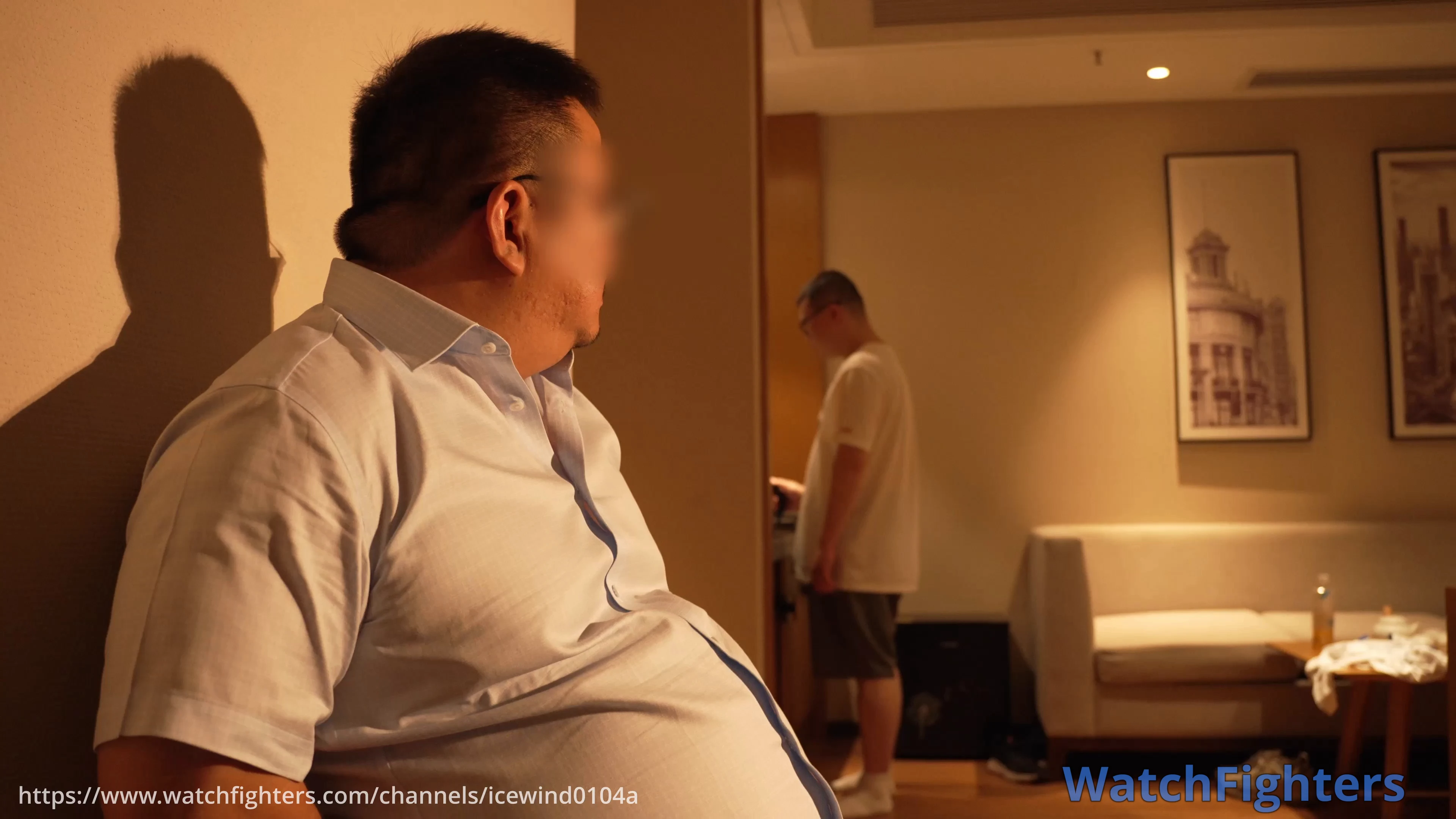 A middle-aged muscular man who is passionate about fitness is sneak-attacked by a villain hiding in the room and becomes his punching toy.
