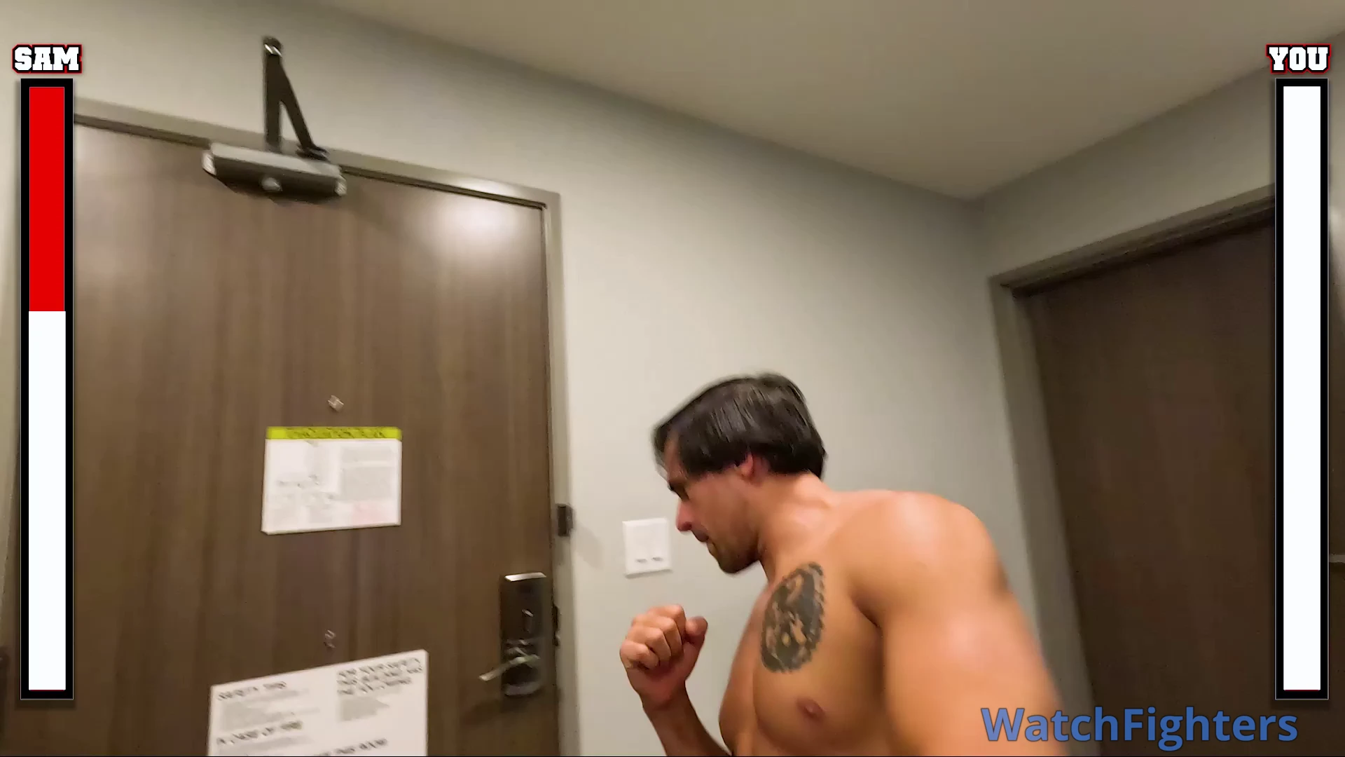 "You" have challenged Sam Stout to a bare fisted fight, any time, anywhere. He comes out ready to brawl, but one of the first things you do is cheap shot him with a low blow! "You" beat Sam down with punches to the face that send him staggering, and lots of low blows that bring him to his knees over and over. Once defeated and the fight ends, he comes back for a rematch wearing less and less, down to his underwear. For those who have been asking for a POV fight with Sam Stout defeated, you don't want to miss this one.