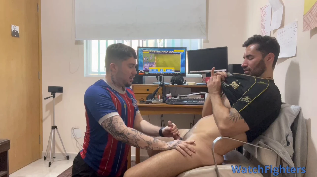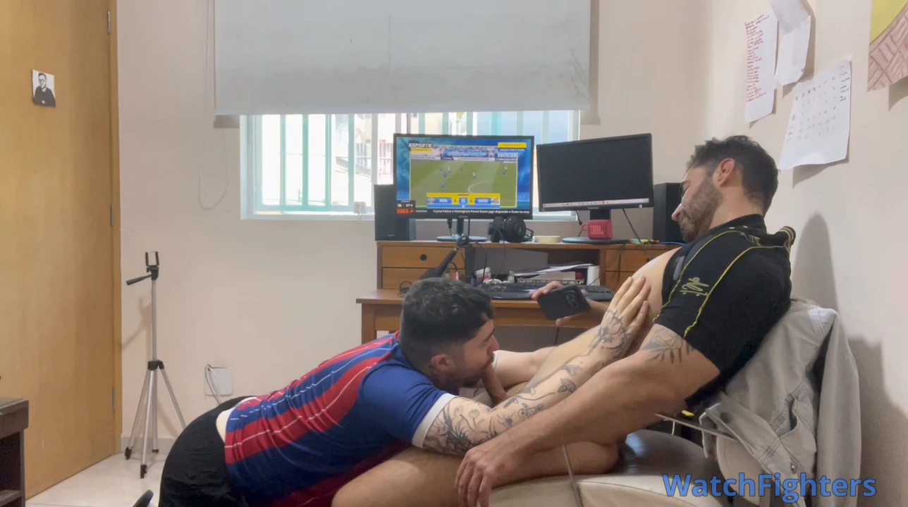 I had to watch soccer at my neighbor's house because my wife didn't want to watch it, so I went to my neighbor to watch it. But since I was very horny and my neighbor wanted to roll, I was the one who scored the goal. I punched him deep and hard in the ass.
