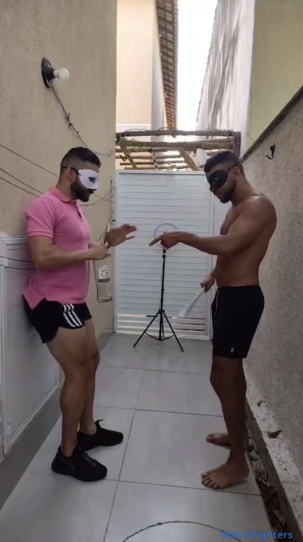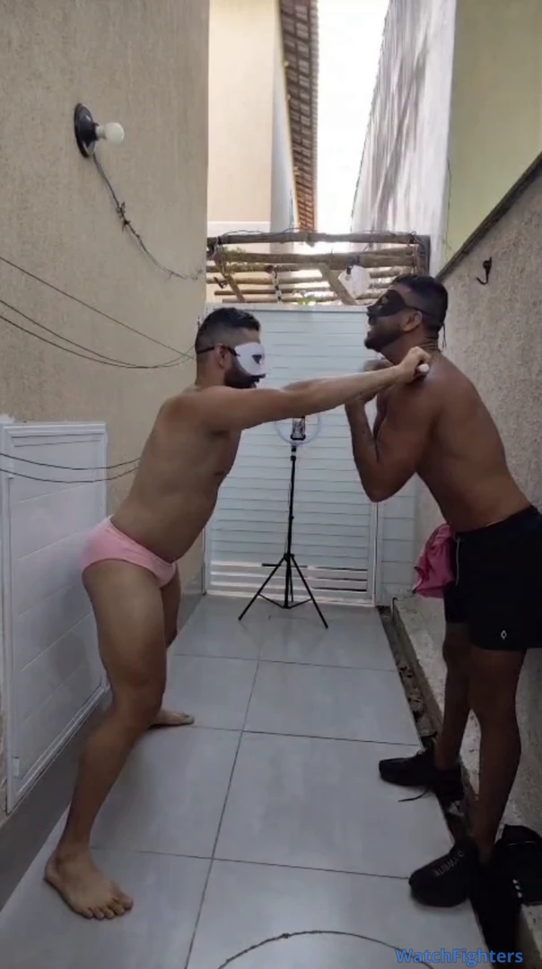 Gay afeminado é obrigado a dar suas roupas para o machão até que ele se revolta e aplica várias chaves de pernas como punição