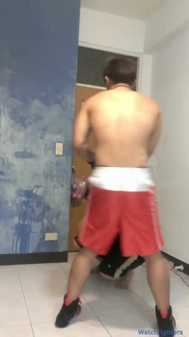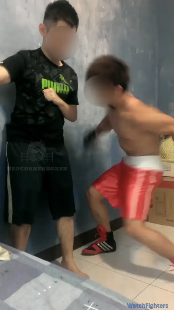 Whenever the bag crouches down, Terry always pulled him up to continue punching badly...