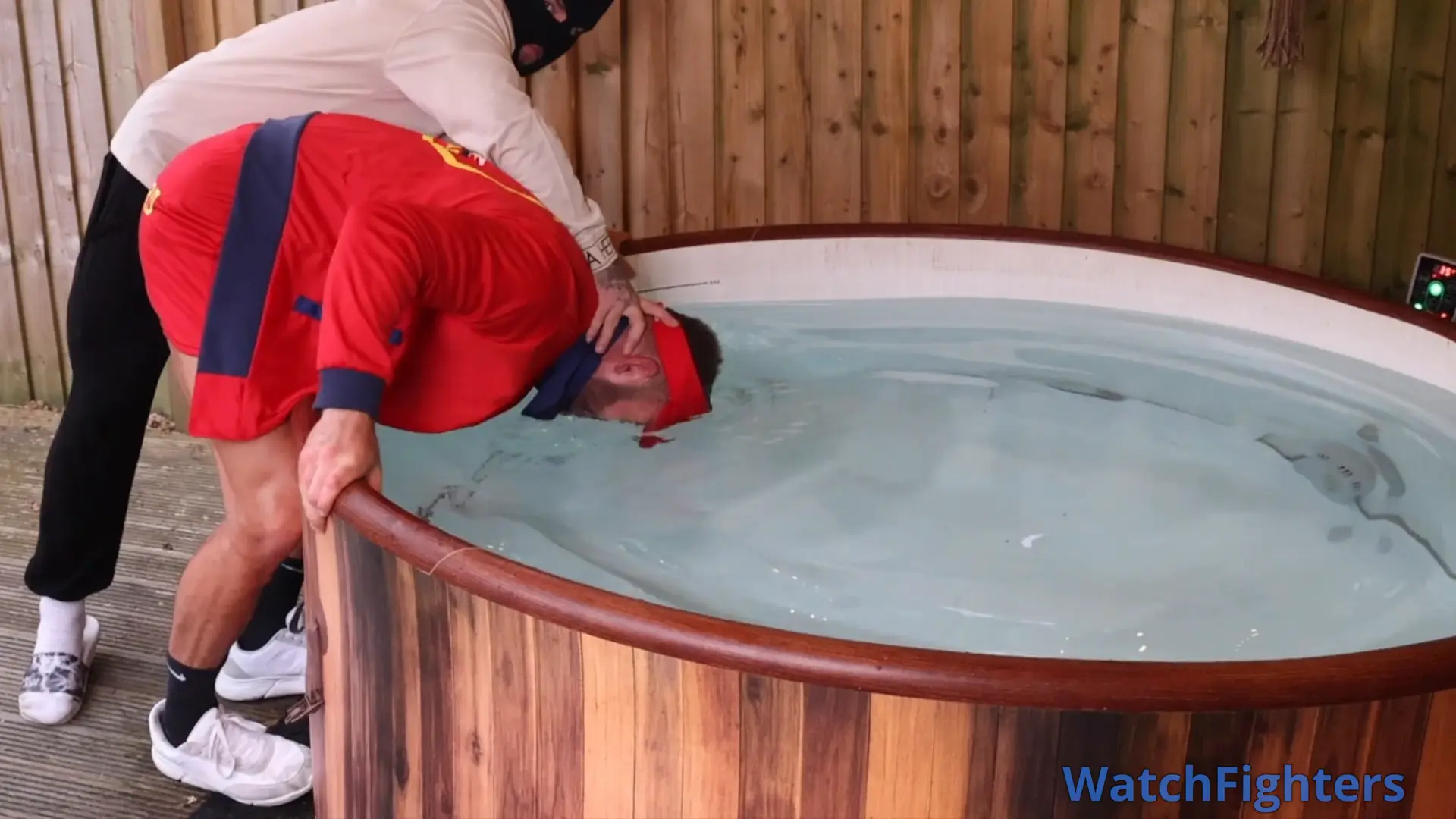 I sneak up behind and dunk him in the water until he passes out and then i push him in the water.