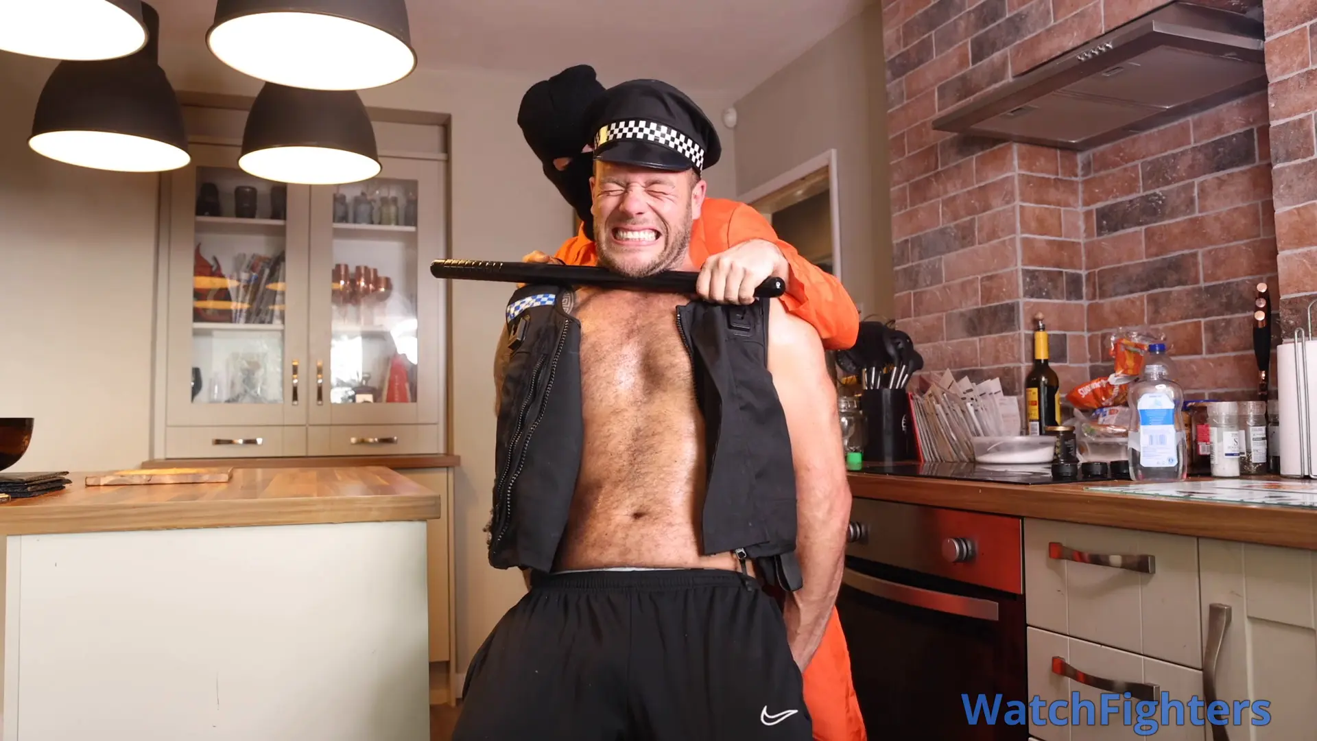 The cop is made to get hard and then instructed to wank until he cums and then he will be set free.