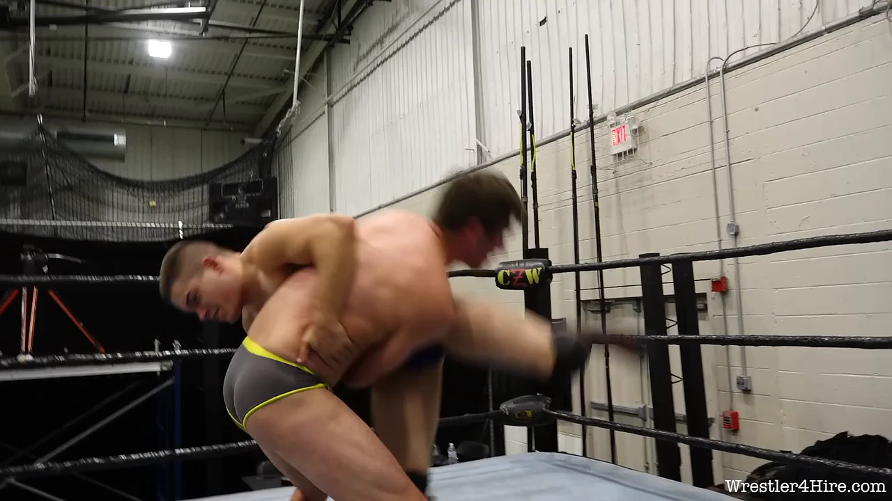 There’s something kinda cute about beefy Vinny, still writhing on the floor from his last match. Surely somebody will come along and help the guy. Hey! Here comes Ethan Andrews, always ready to lend a hand to a fellow fallen fighter!