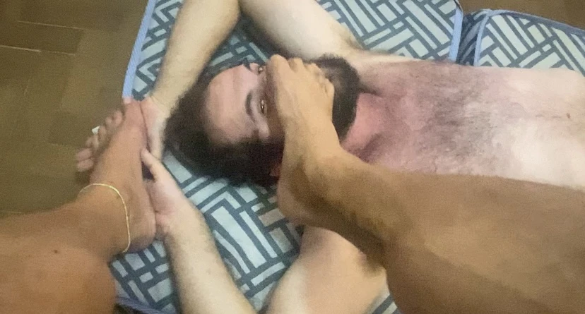 A ritual of strength and domination with my calves and feet against a bearded and hairy male. Dream or realitty? It's up to you to decide….