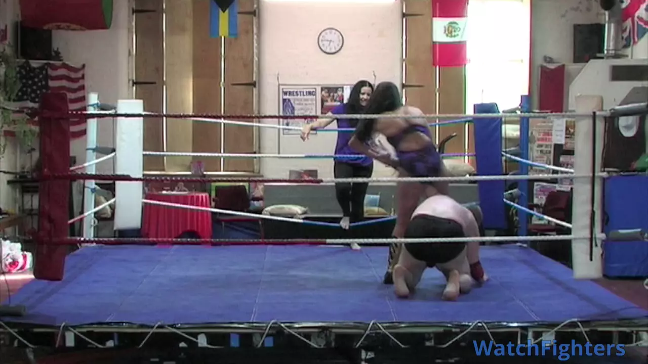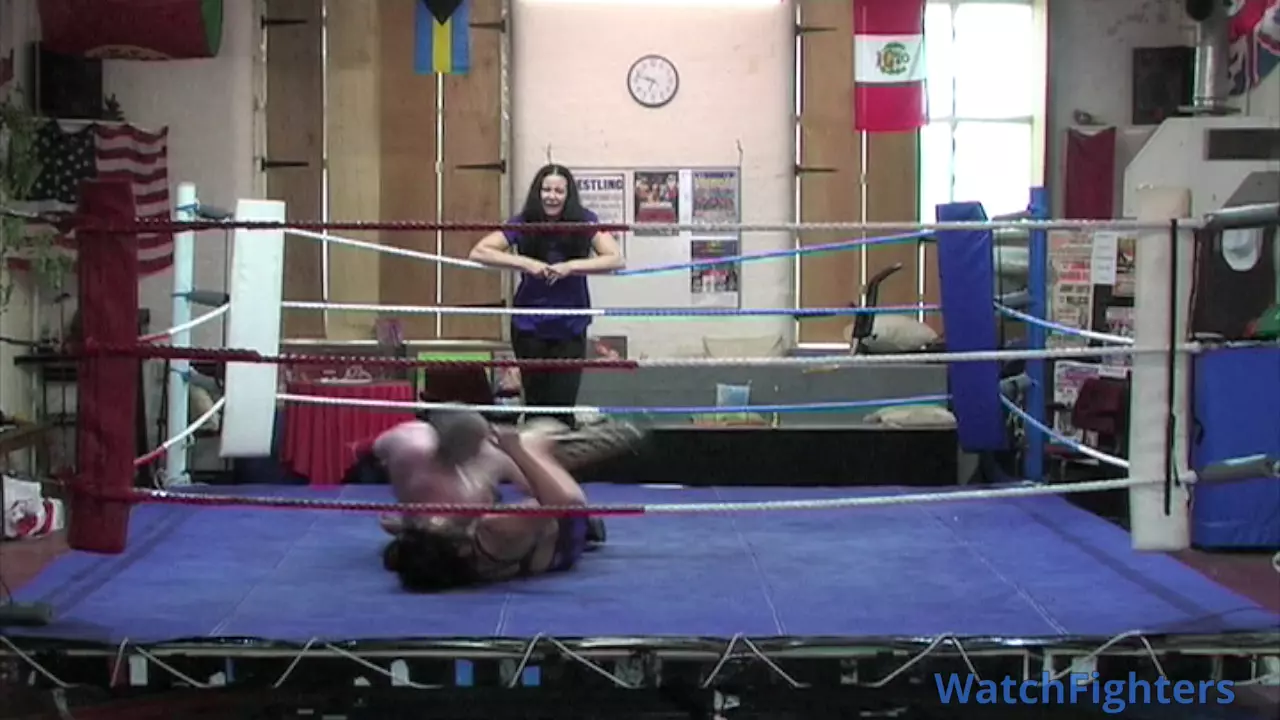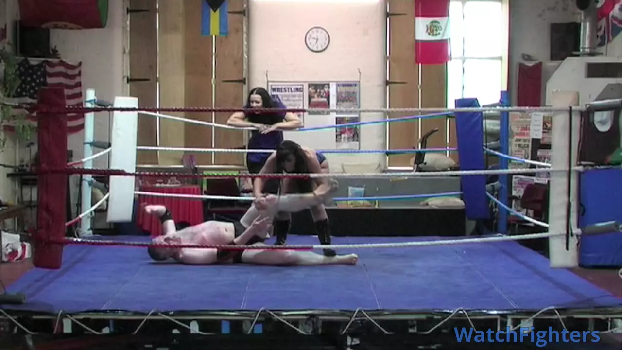 Action from a mixed wrestling rematch featuring Pippa v Stephen held at The Wrestling Factory, Manchester.