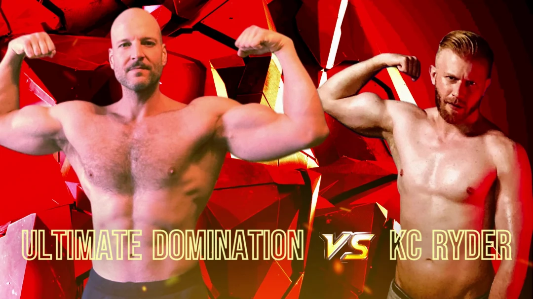 KC Ryder has been on a red hot win streak both on the mats and in the ring. Will he be able to overcome the unstoppable power of Ultimate Domination? Determined to put KC in his place, the muscled powerhouse lays down the law and shows the true meaning of domination. KC's strength and cheap tactics keep Ultimate Domination on his toes, but in the end it's all about power, control, and reaching that inevitable conclusion: extracting that oiled up emission finish from KC. Ultimate Domination is in control and he knows it. He forces KC to erupt with a massive arm flexed around his throat.
