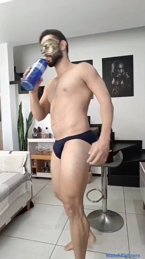 Mendigo bêbado exibindo seus quadríceps esculturais