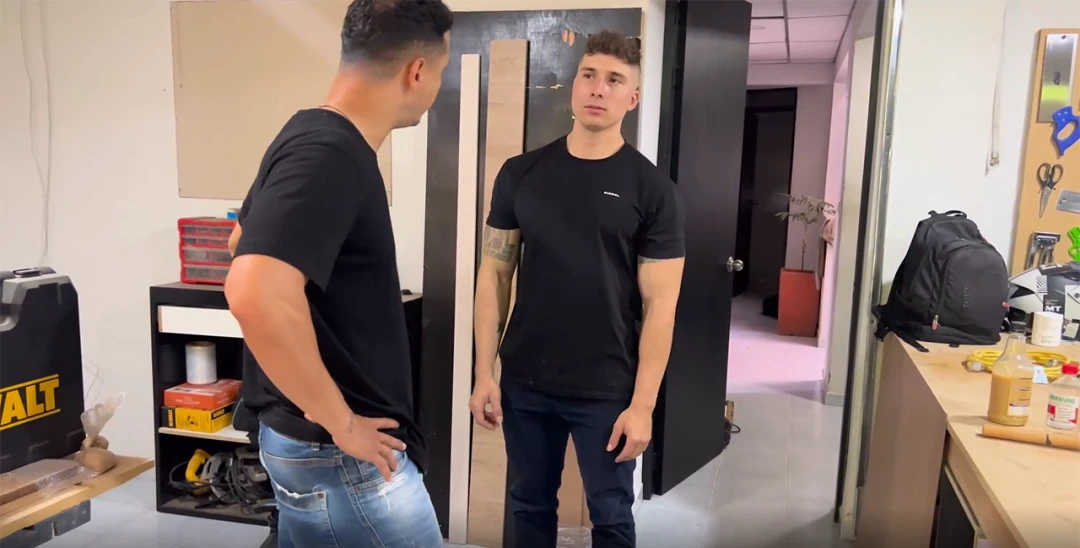 Danniel's boss notices mistakes in his work in the workshop and lands a few punches to Danniel's unsuspecting gut. After Danniel takes a shower, his colleagues grab his arms and the boss decides to further punch Danniel until he learns how to do his job.