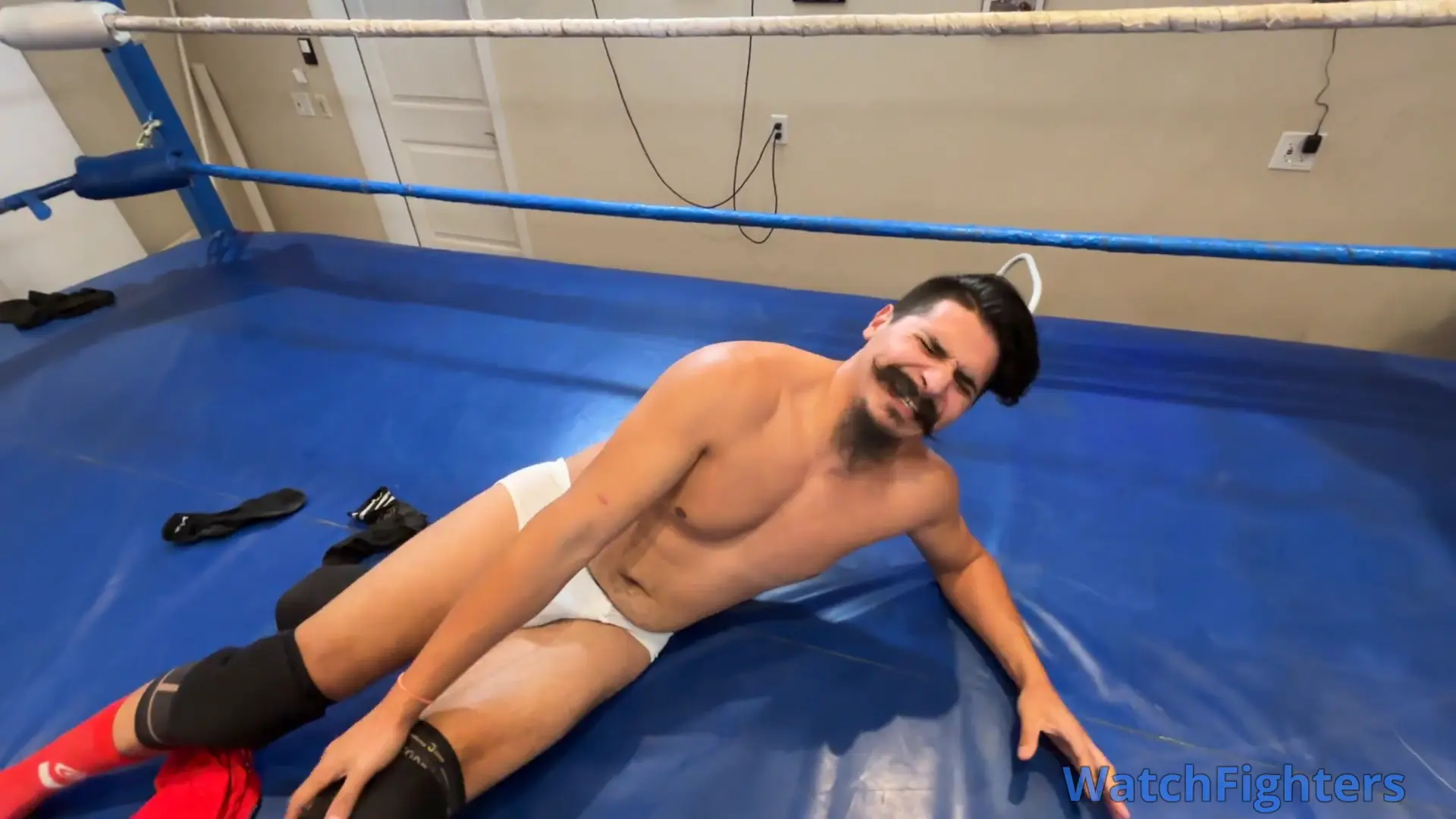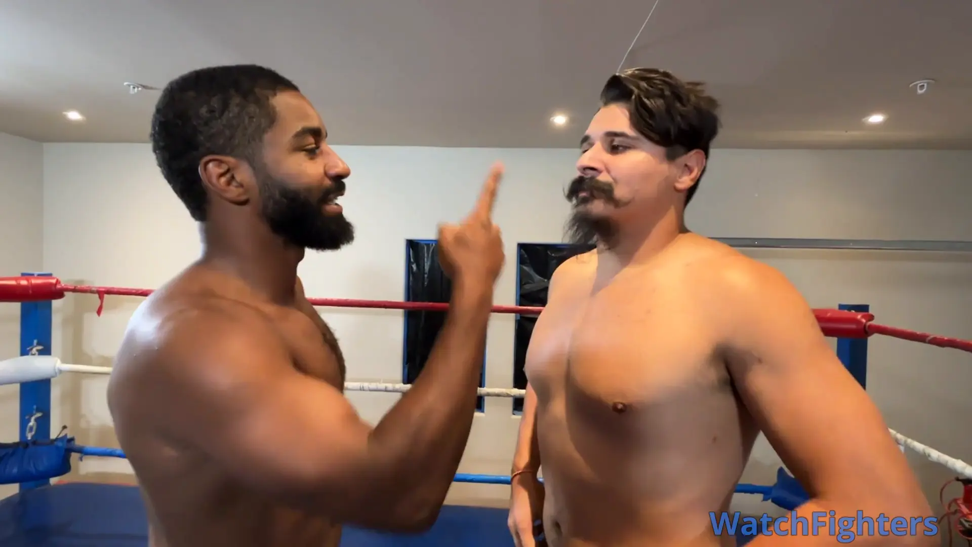These two muscled studs are talking trash and each threatening to tell the world that the other wears tighty whities! Watch them as they grapple and strip off each other’s trunks to prove who’s the baddest guy in the ring!!