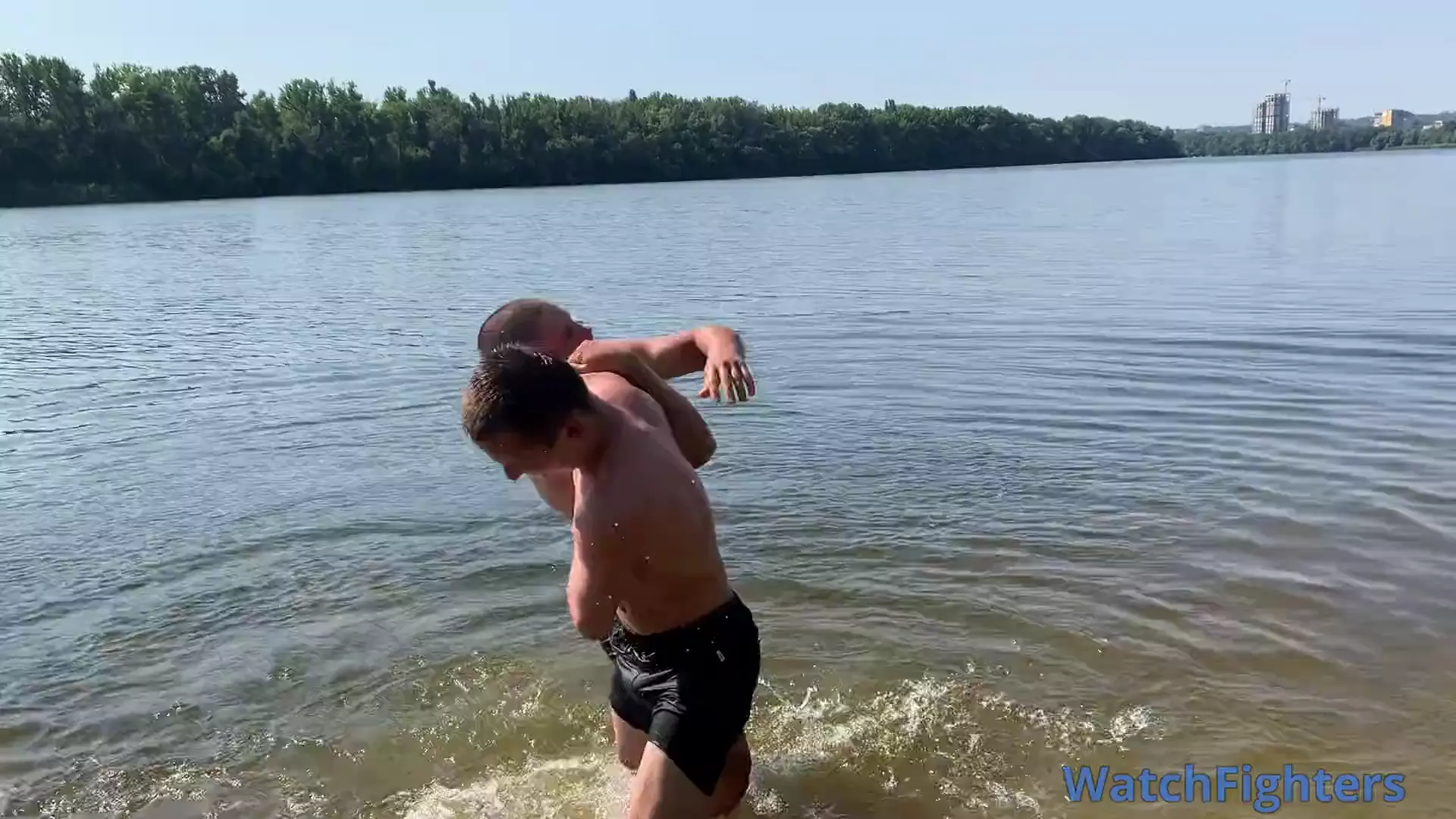 Jim and Jack spend the fight relaxing on the river. In tight scissors, they try to drown each other in the water. They are not embarrassed by people passing by on a boat who are watching how the guys hold each other in scissors. Also, the guys work out wrestling throws into the water well. Enjoy )