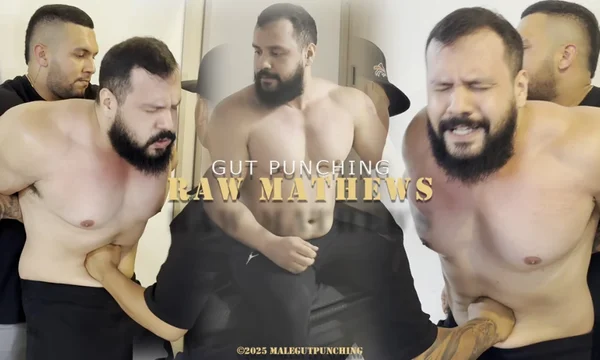 Dark-blond rookie Drew Harper is back, and we are treated to the full splendor of his muscular shoulders and biceps as Ref Slade Gorman helps him out with some upper body stretches. Harper is in skimpy yellow briefs that leave little to the imagination. And the silver daddy lovers out there will enjoy that Ref Slade is showing off his impossibly vascular thigh muscles in a silver pouch that is equally impressive.
