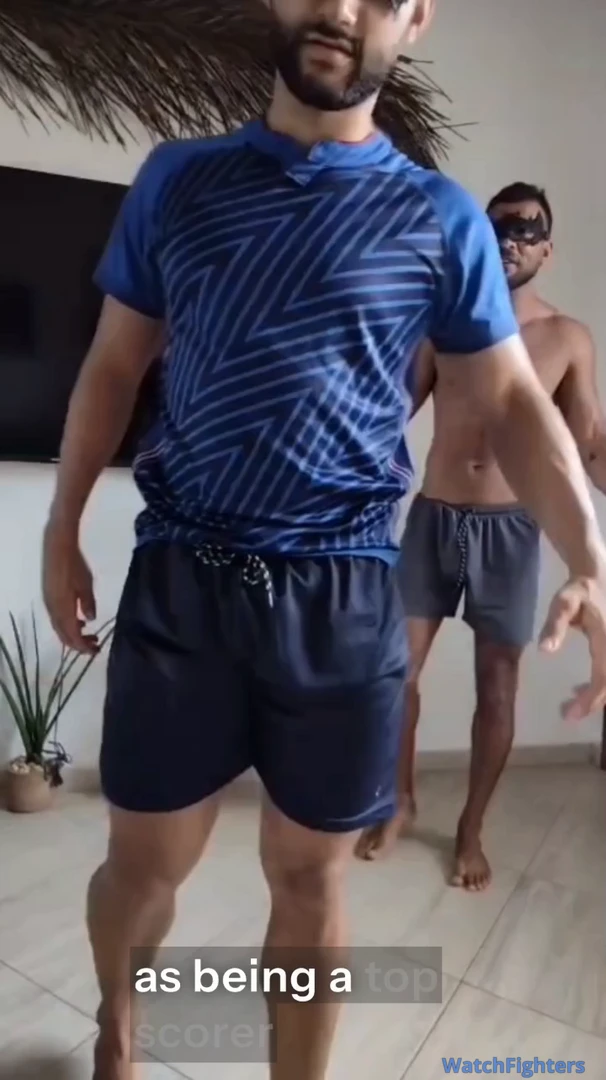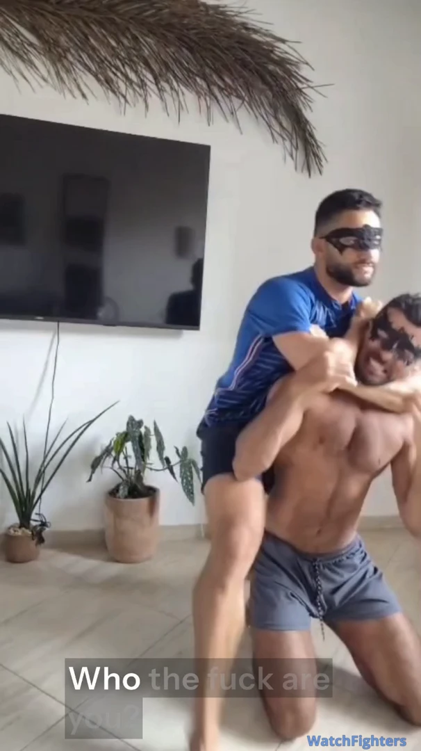 Cara alto e marrento sendo destruído pelo jogador de futebol musculoso com várias tesouras corporais