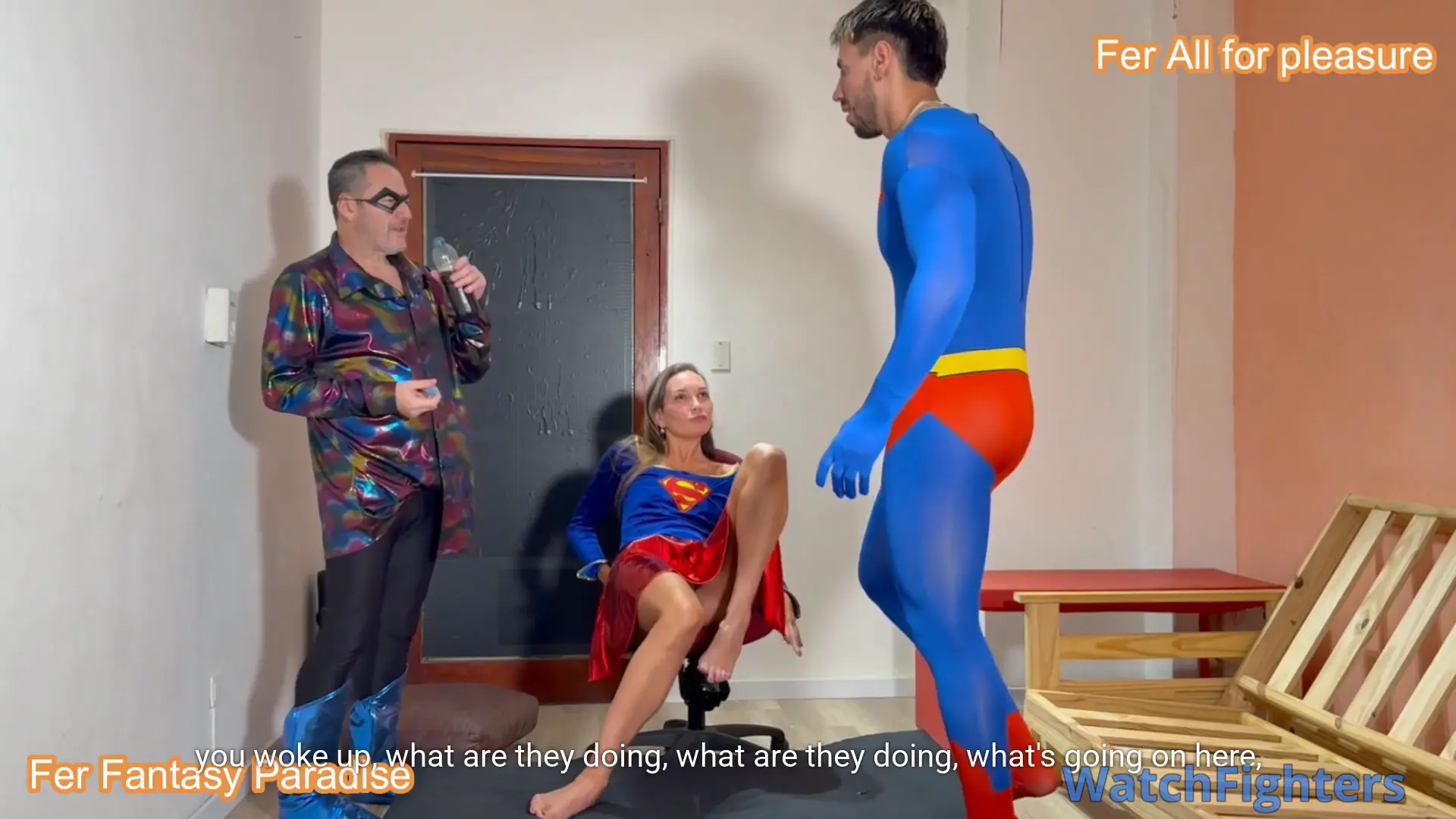 Now, Supergirl, you're Superman, and Superman, you're Supergirl. Supergirl begins to pretend to masturbate an invisible penis, while Superman stimulates his ass uncontrollably and moaning